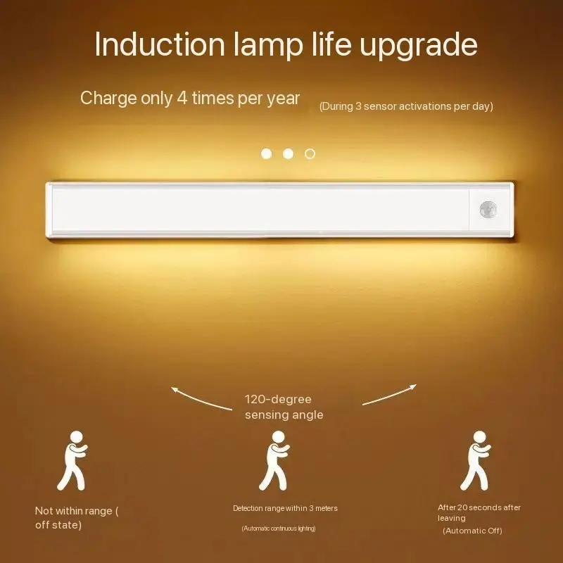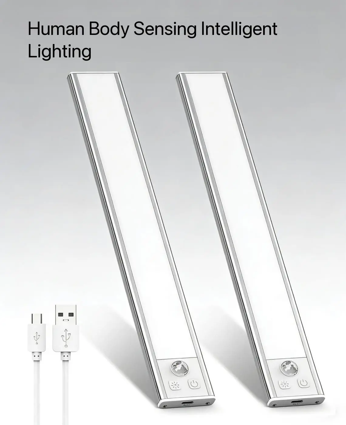 Under Cabinet Lights, 52 LED Cold White Rechargeable Under Cabinet Lighting Motion Sensor LED Lights for Kitchen, Counter, Closet, Stairs (12.2 inches Silver)1 PCS and 2 PCS available for selection