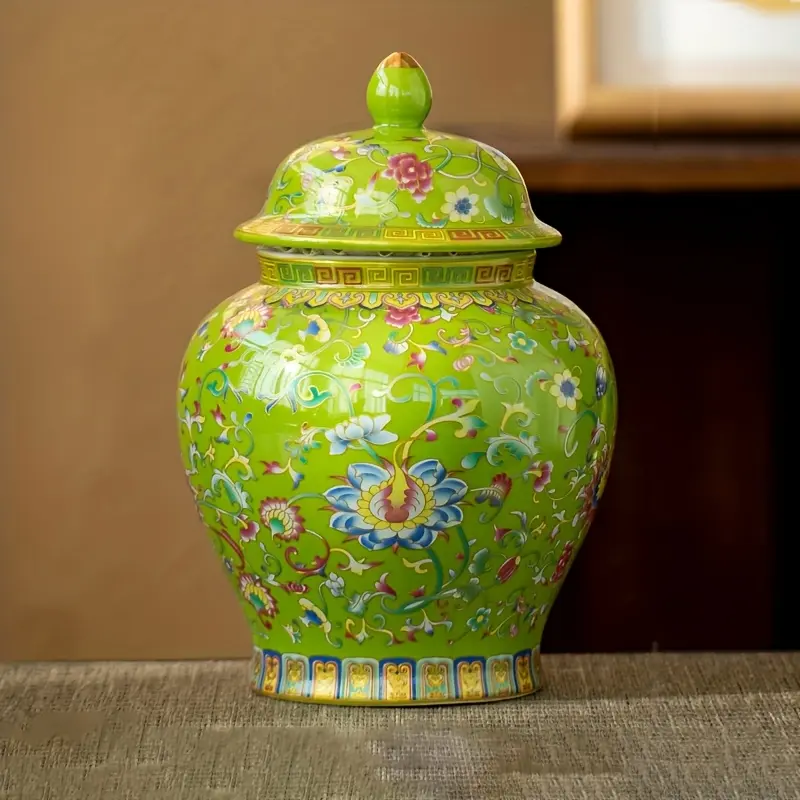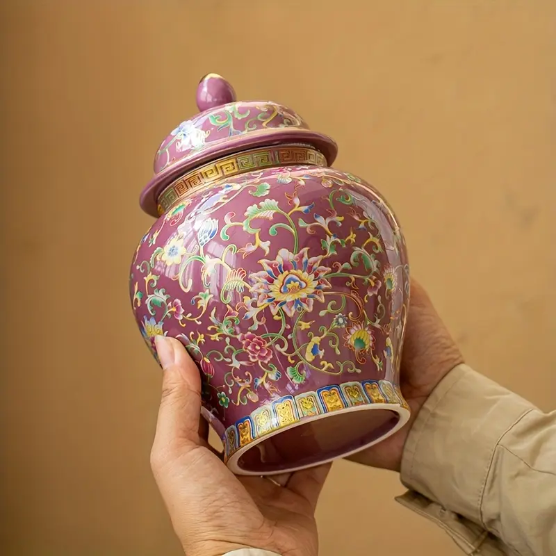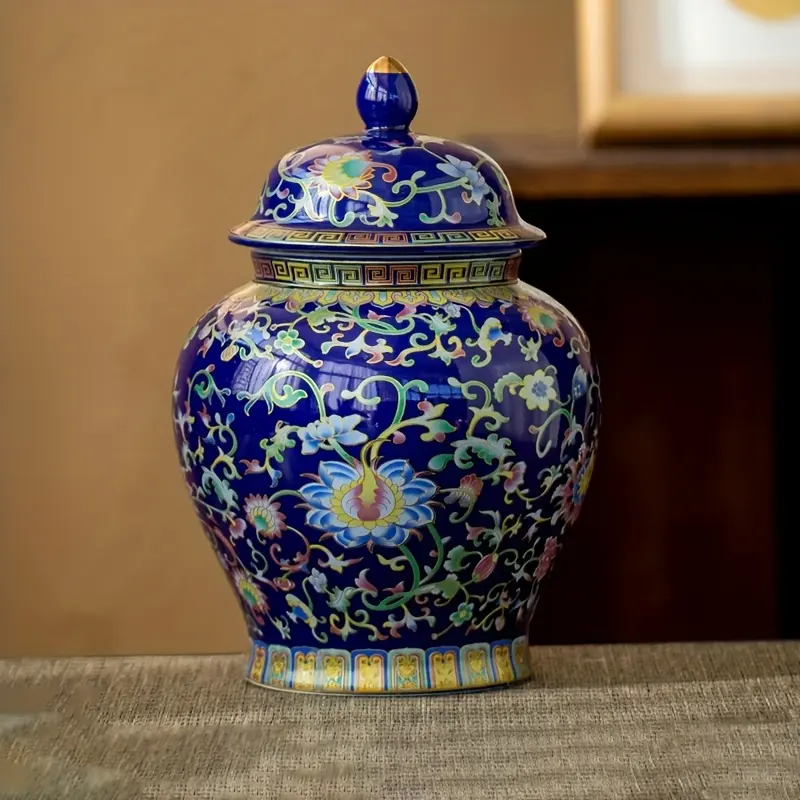 Enamel for Lotus Vine Ceramic Jar, Home Storage Container, Bathroom Storage and Organizer, Canisters
