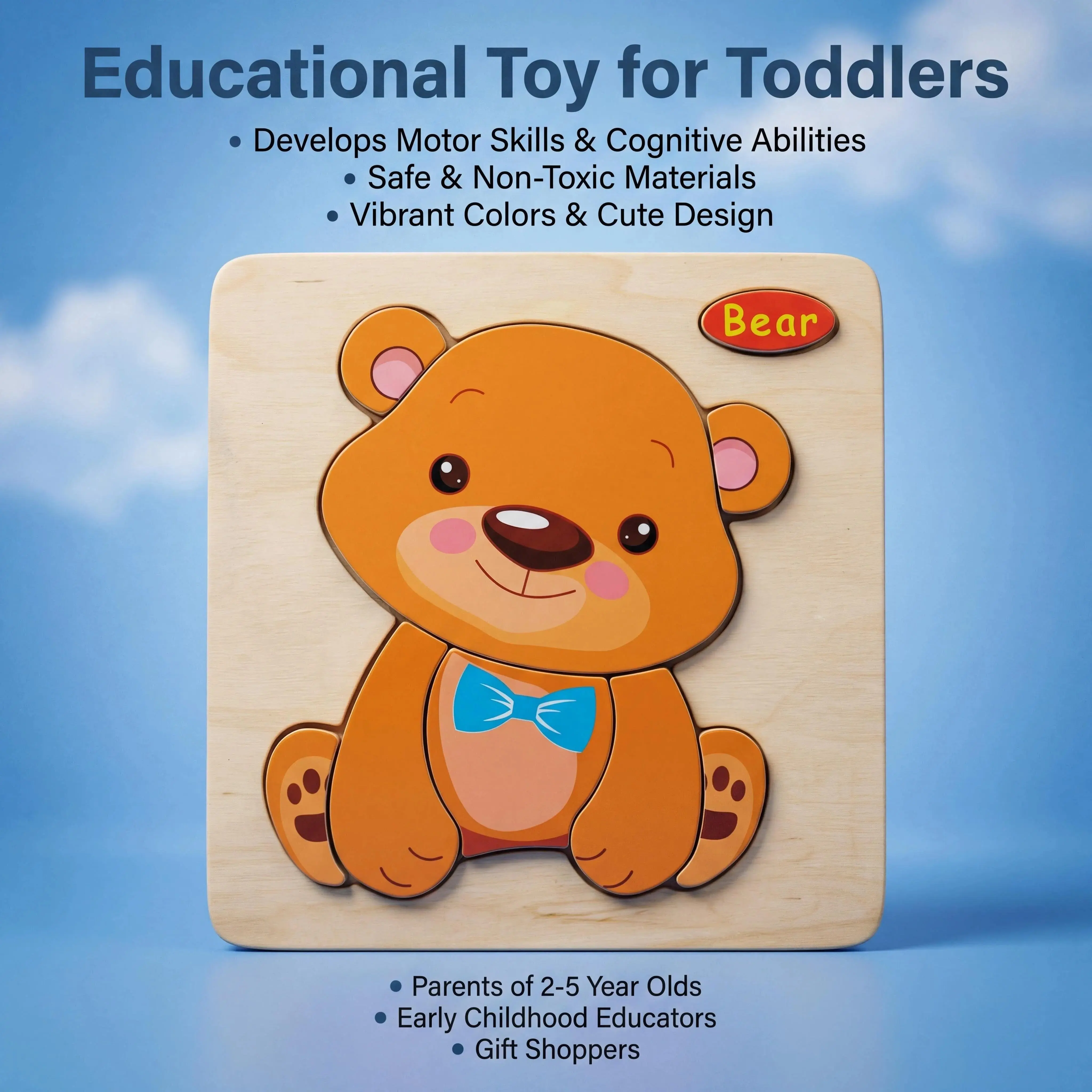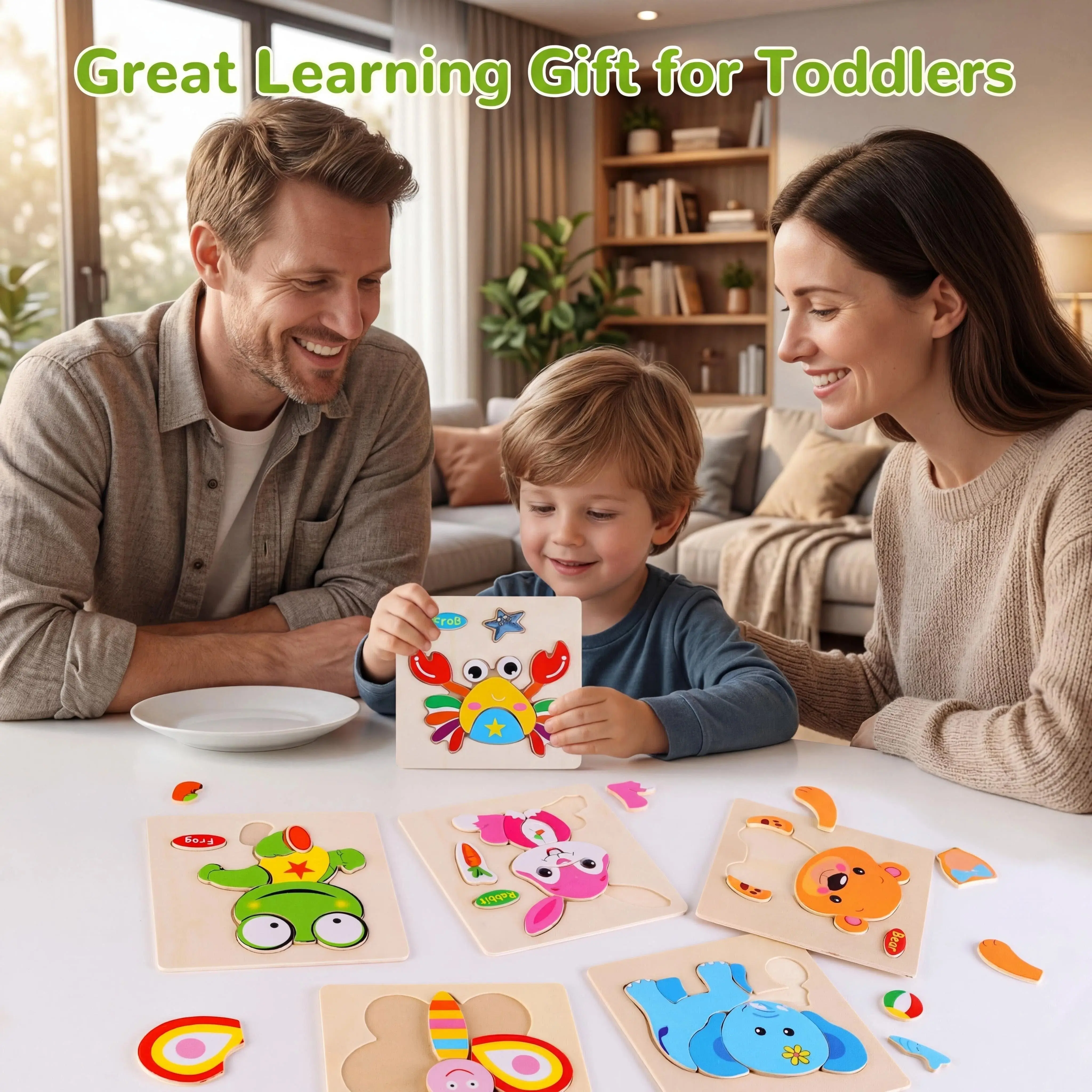 ·Safe & Toddler-Friendly Wooden Puzzle - Crafted from high-quality, eco-friendly wood with smooth edges and non-toxic, water-based paint, this animal puzzle set is safe for little hands. Each piece is thick, durable, and easy for toddlers to grasp, making it a perfect choice for children ages 1-3.