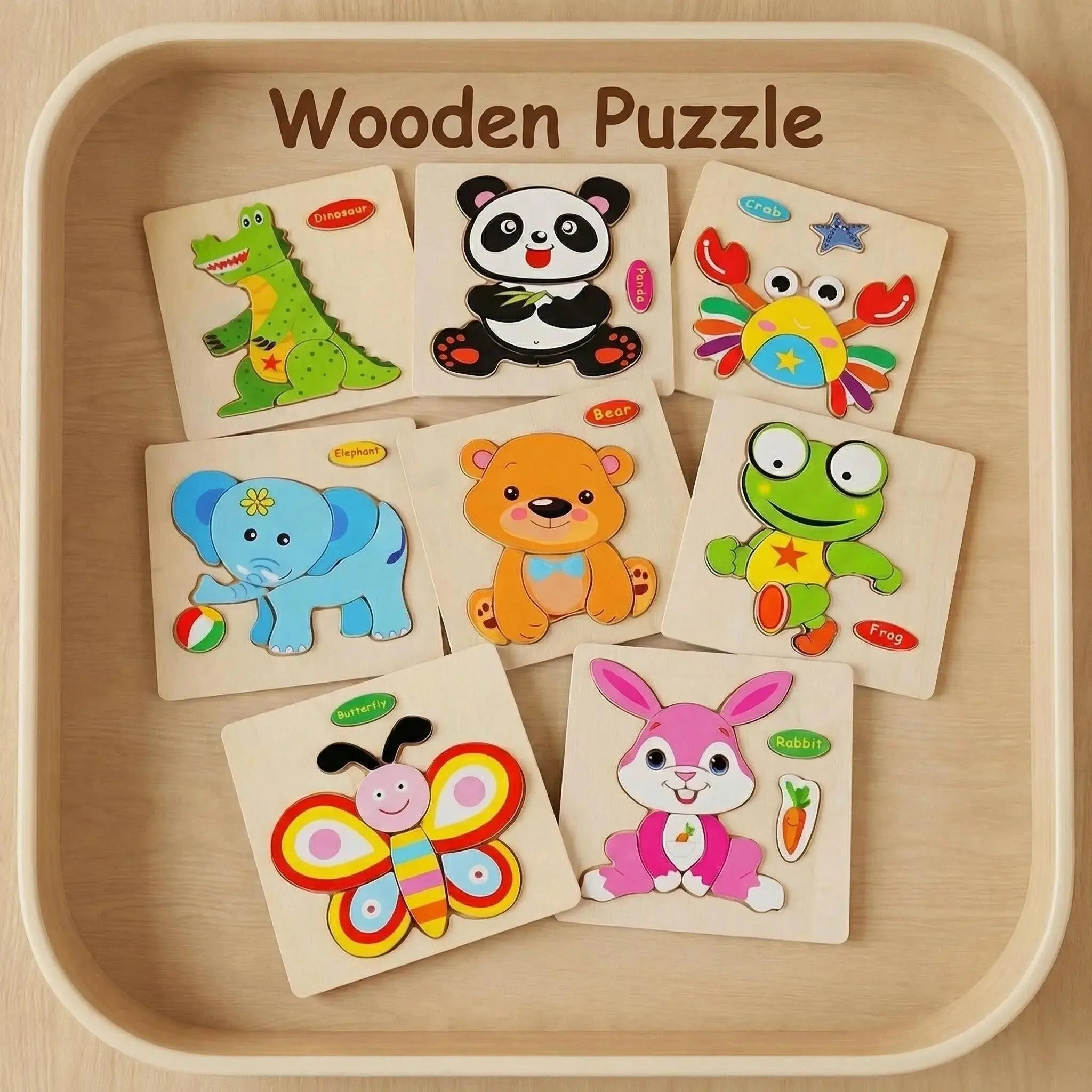 ·8 Adorable Animal Designs - Our wooden puzzle set features 8 vibrant animal shapes: crab, bear, elephant, dinosaur, bunny, panda, butterfly, and frog. The colorful and cute animal characters are specially designed to attract young children's attention and spark their interest in learning through play.