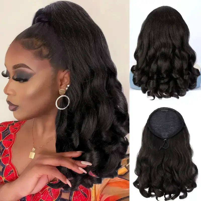 Frodio 100% Human Hair High-Density 10-Sec Ponytail Hairstyle Drawstring Ponytail Hair Extensions Ponytail Black Girls Valentine's Day