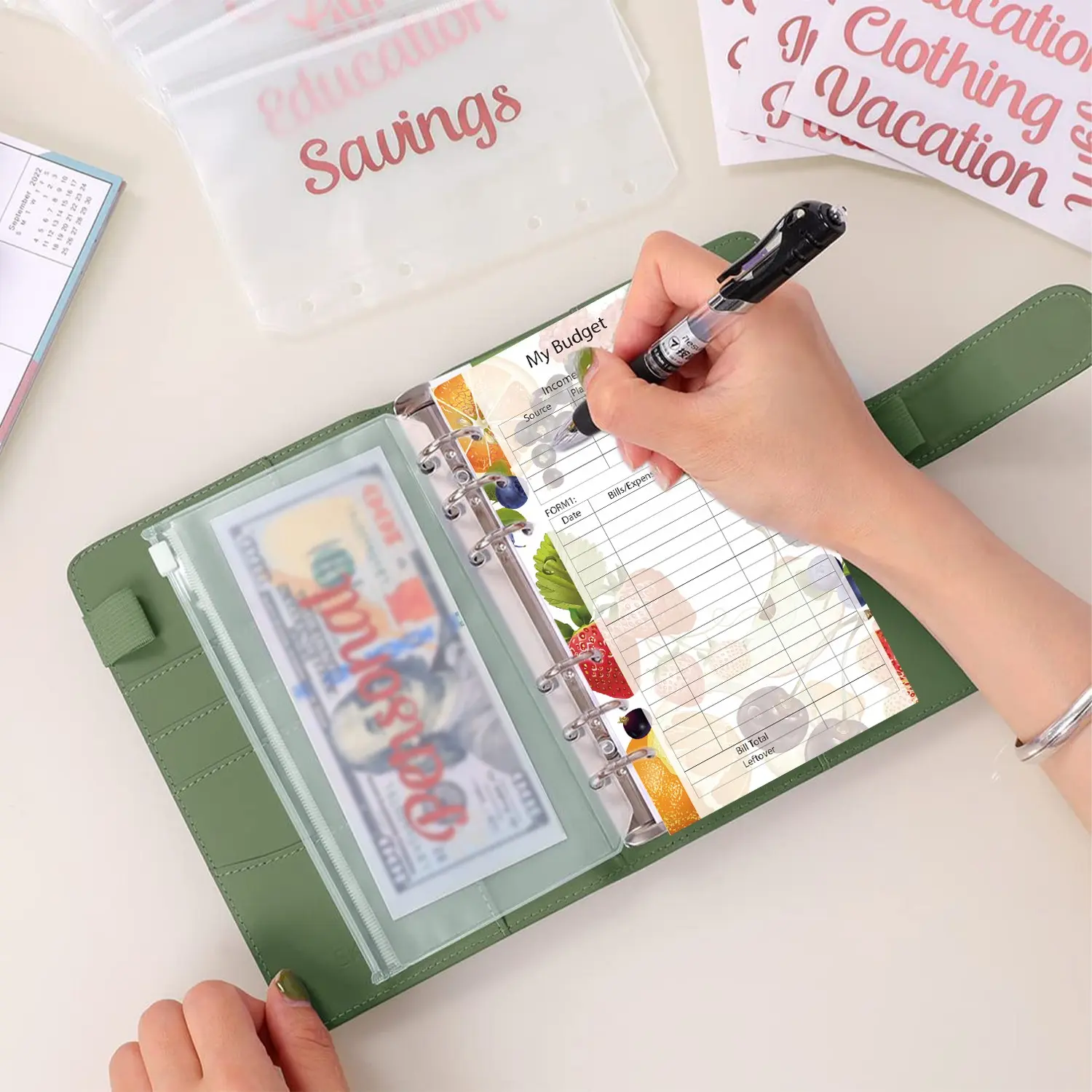 25pcs A5 Size 6-Hole Binding Bags, Plastic Zipper File Folders, Waterproof 6-Hole Zippered Ring Binder Pockets, Document Receipt Book Organizer, Binder Pockets, Budget Cash Envelopes for Budgeting, Loose Leaf Bags for 6-Ring Budget Binder, Storage Binder