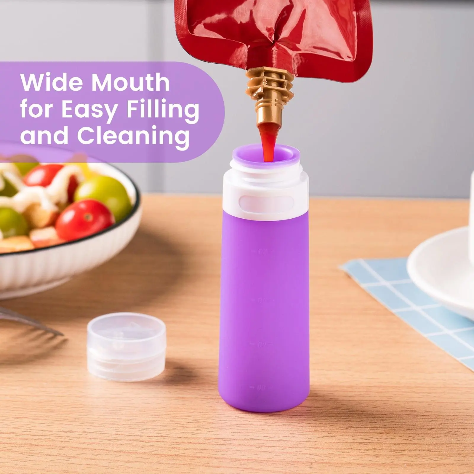 These mini squeeze bottles are essential for meal prepping and conveniently carrying your favorite condiments and sauces wherever you go. Perfect for BBQ sauce, oil, ketchup, mustard, hot sauce, mayo, syrup, salad dressing, and even ranch, they offer versatile use. Each bottle features a reliable leak-proof twist-on cap, ensuring a mess-free experience when stored in your bag or lunch box. Simply align the cap threads and tighten for a secure, maximum seal. Made from soft, food-grade silicone, these bottles provide a convenient and safe way to transport your dressings.
