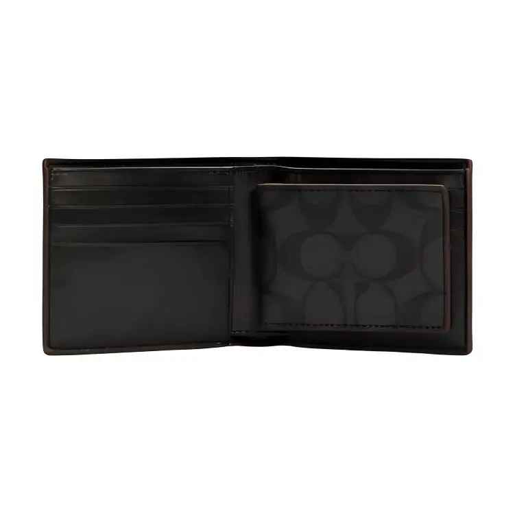 COACH Classic Monogram Tri-Fold Cardholder & Keychain Wallet (Men's, Black)