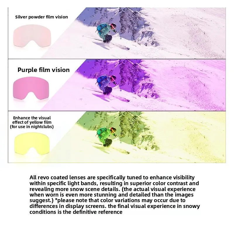 Introducing the HX06 adult ski goggles, a versatile choice for skiing, snowboarding, and outdoor cycling. These goggles feature a large spherical lens that delivers an expansive field of view and reduces peripheral distortion, allowing you to see more of the trail or road ahead. The double layer anti fog design keeps your vision crystal clear by preventing moisture buildup, even during intense physical activity or sudden temperature changes.