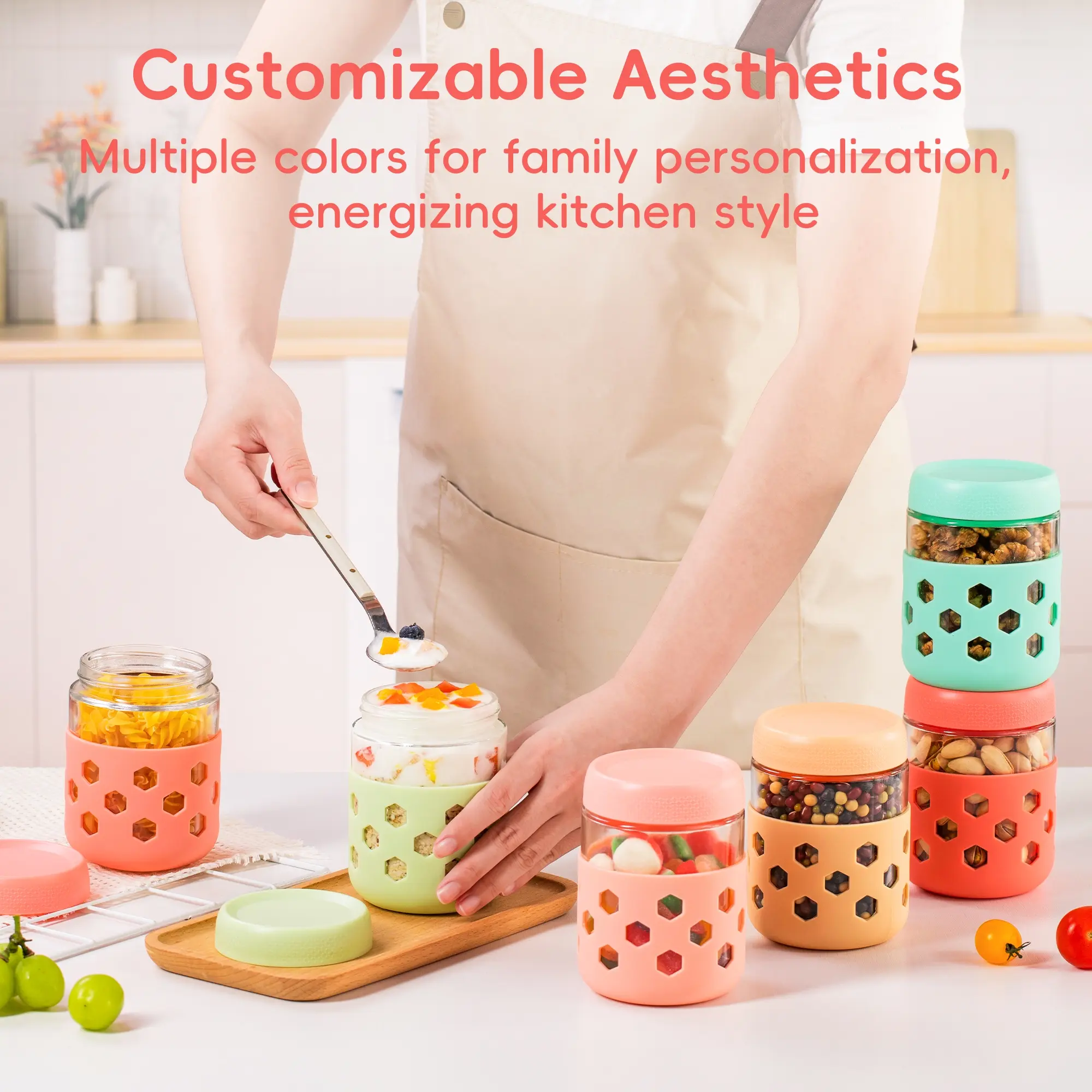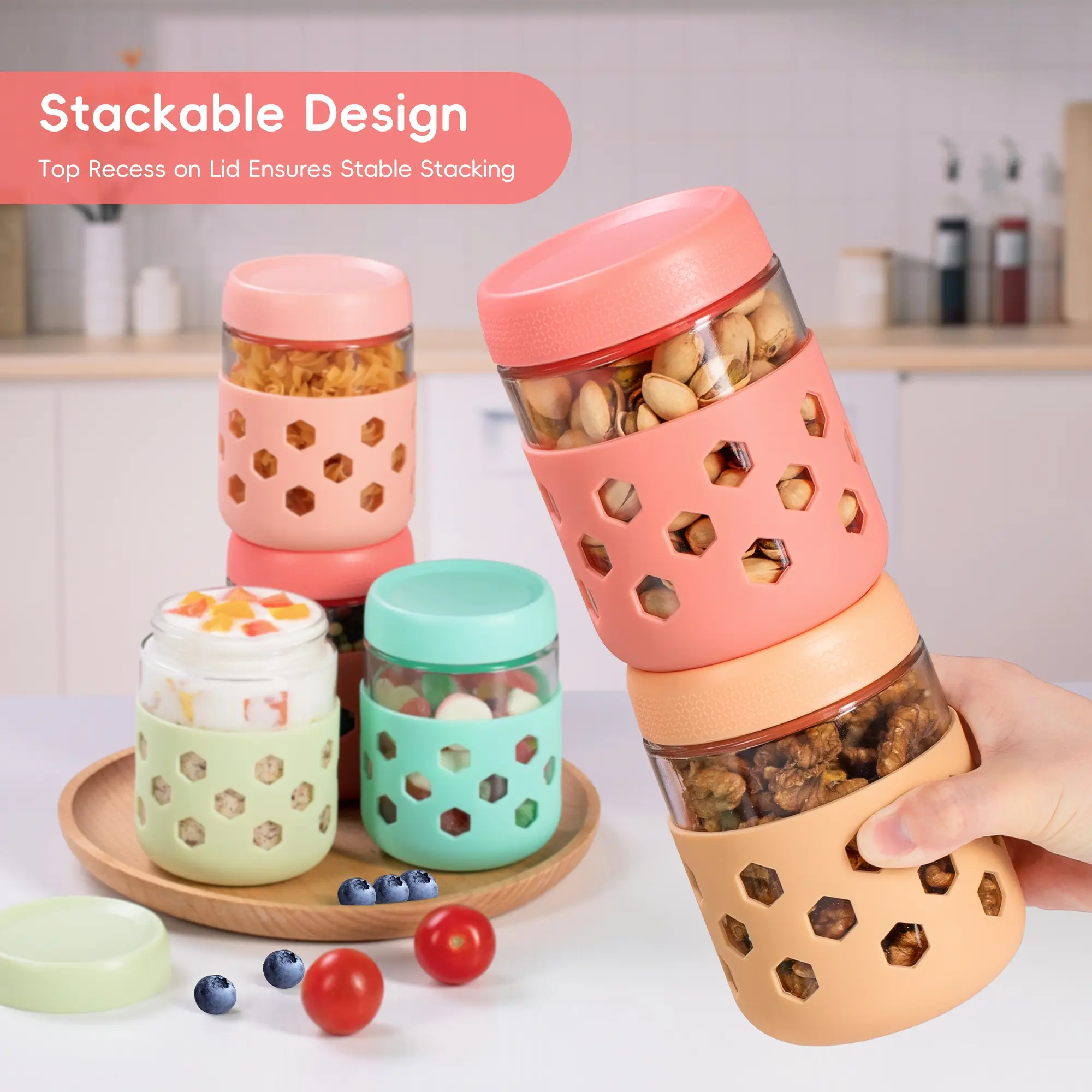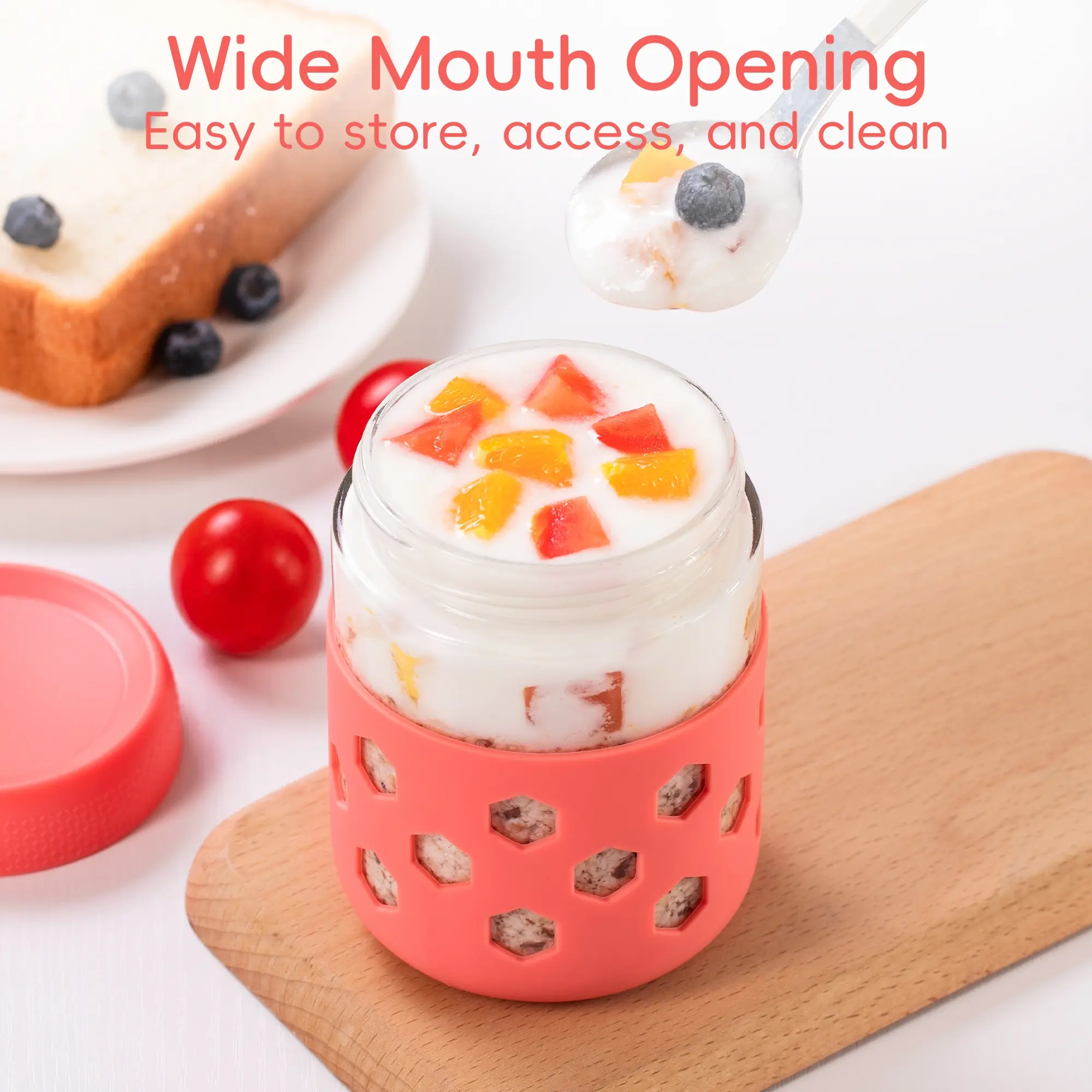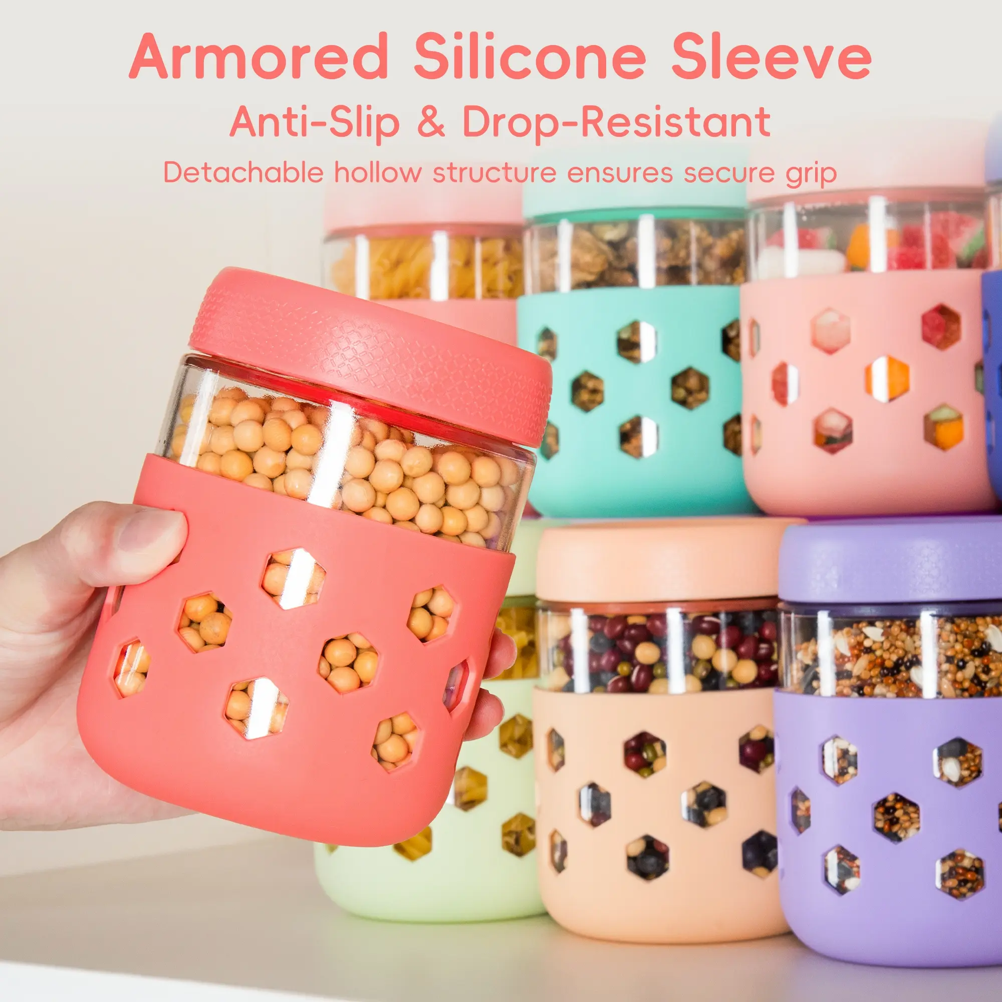 Silicone-Armored Overnight Oats Jars: Extra-thick silicone sleeve absorbs 70% drop shock, and grip holes conquer wet hands. Available in a range of colors for personalization and to turn meal prep into happy rituals.