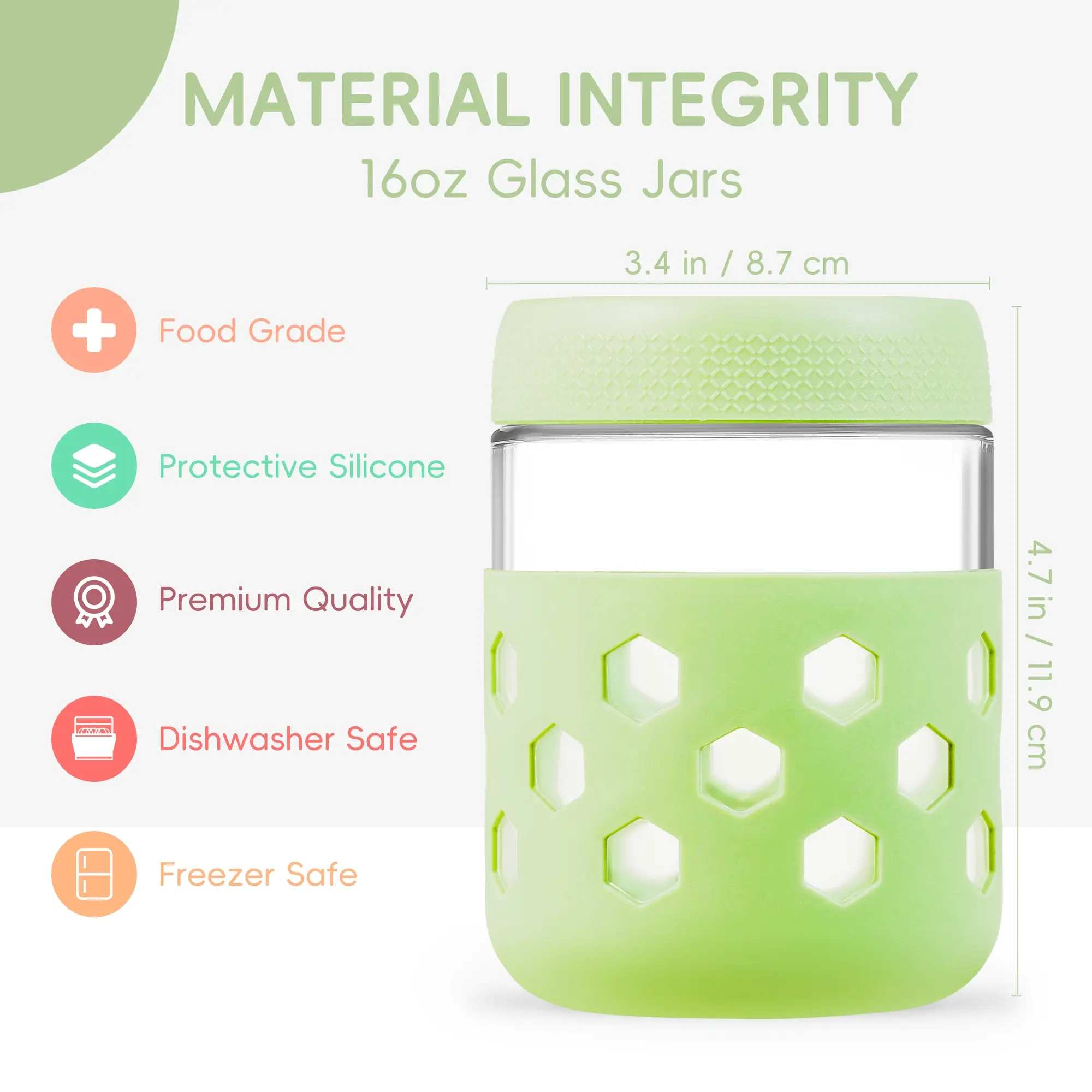 Durable Overnight Oats Containers: Crafted with BPA-free, reusable glass and protective silicone sleeves. Shatterproof design extends container life¡ªelevate eco-friendly meal prep in style. The mason jars for overnight oats are freezer and top rack dishwasher-safe.