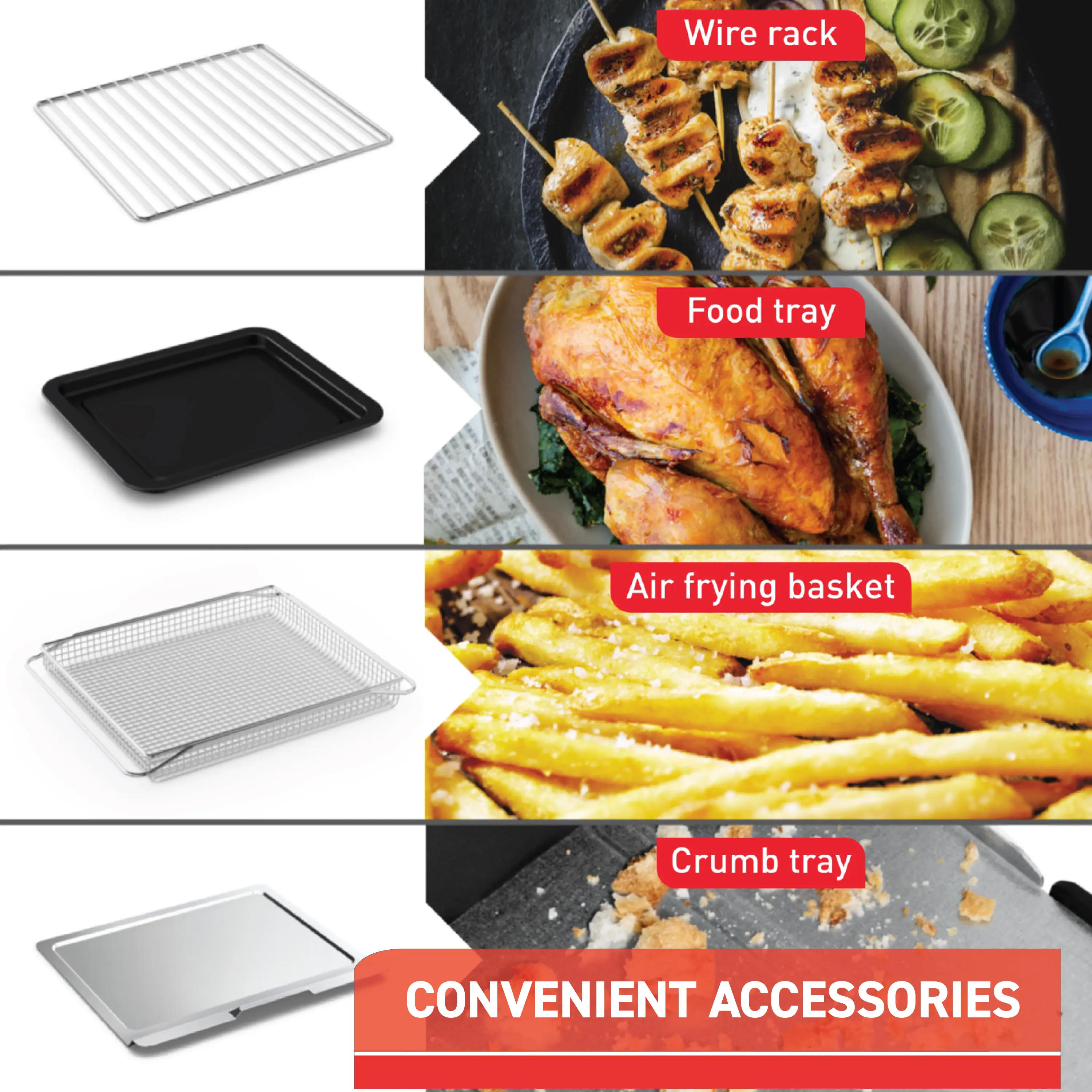 Suitable for up to 6 people, with space for a whole chicken (up to 7 lbs), pizza, bread, and more.