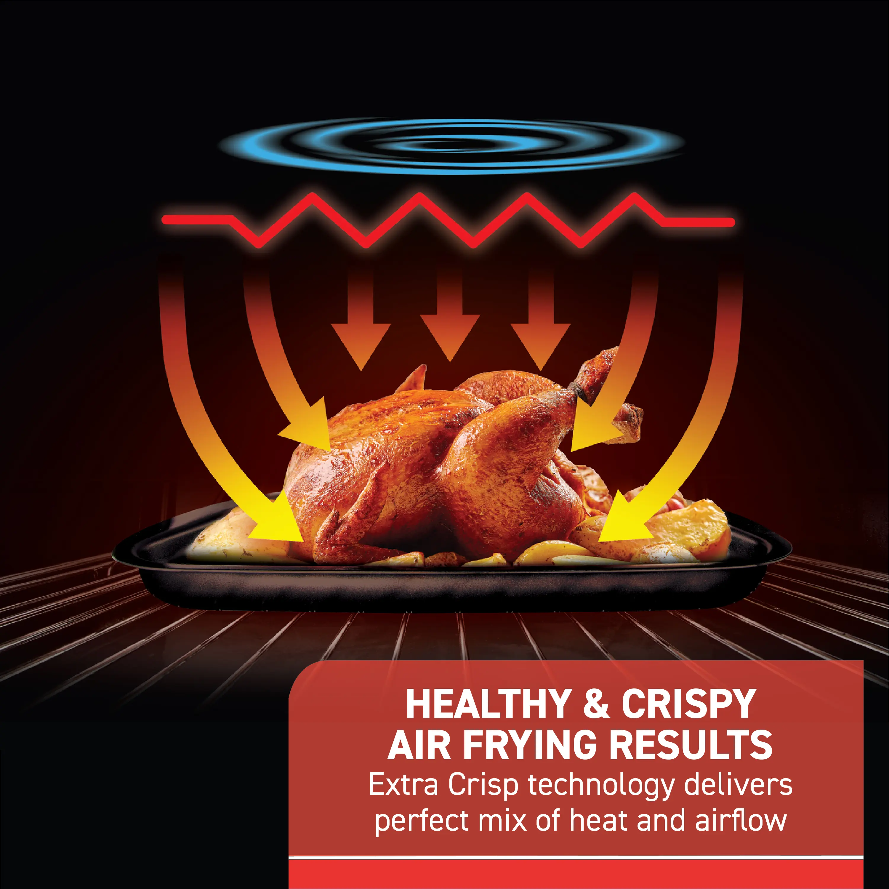 Provides a combination of heat and airflow for crispy results with little to no oil.