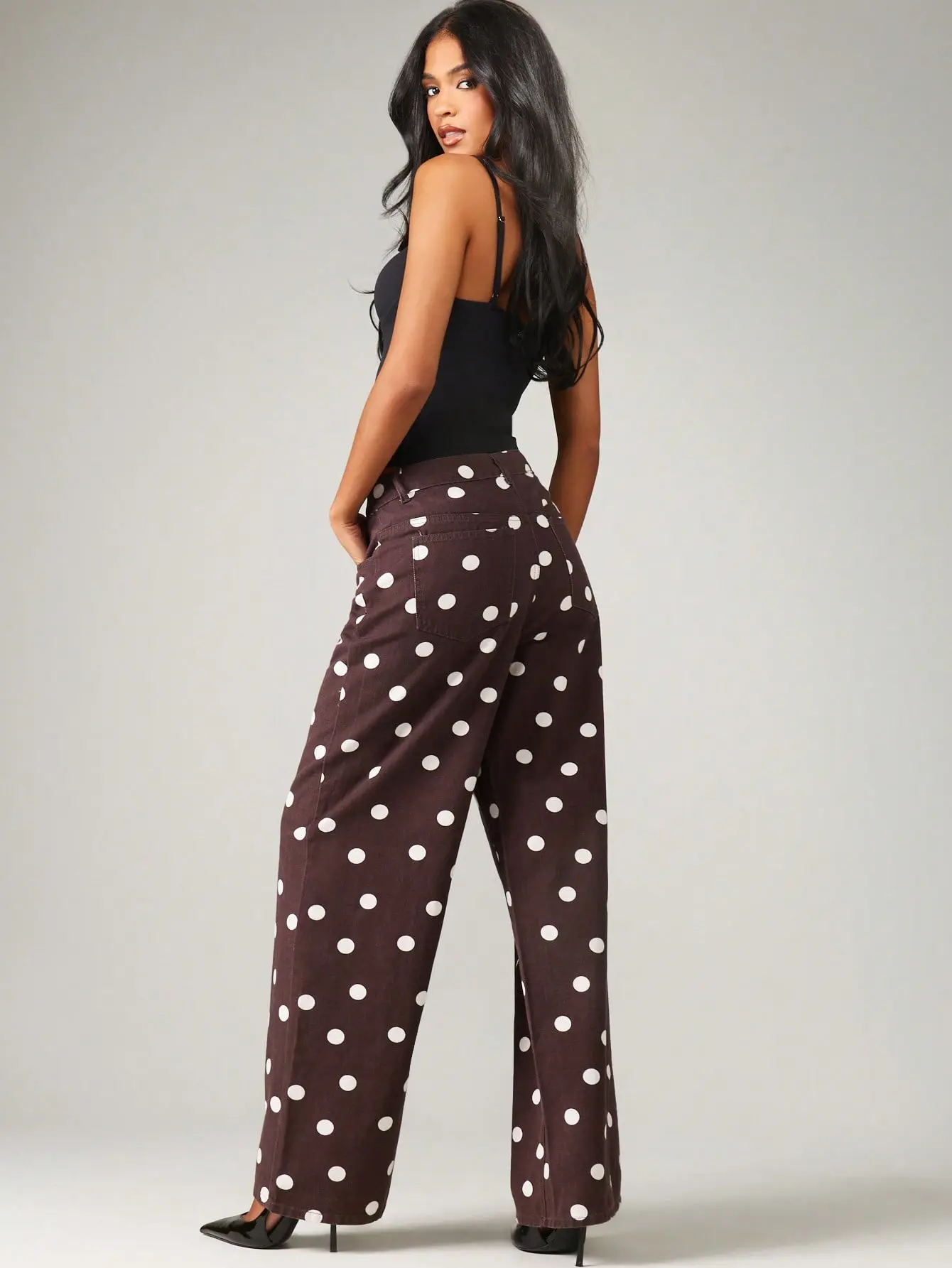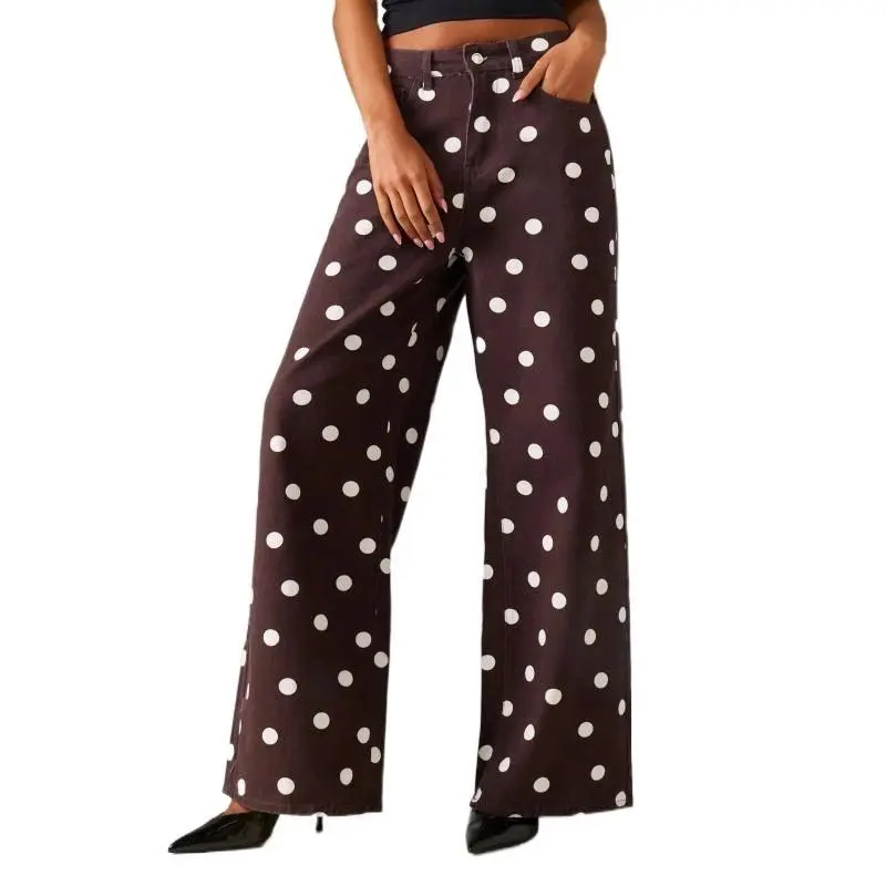 Women's Casual High-Waisted Stretch Polka Dot Wide Leg High Waisted Retro Style Jeans