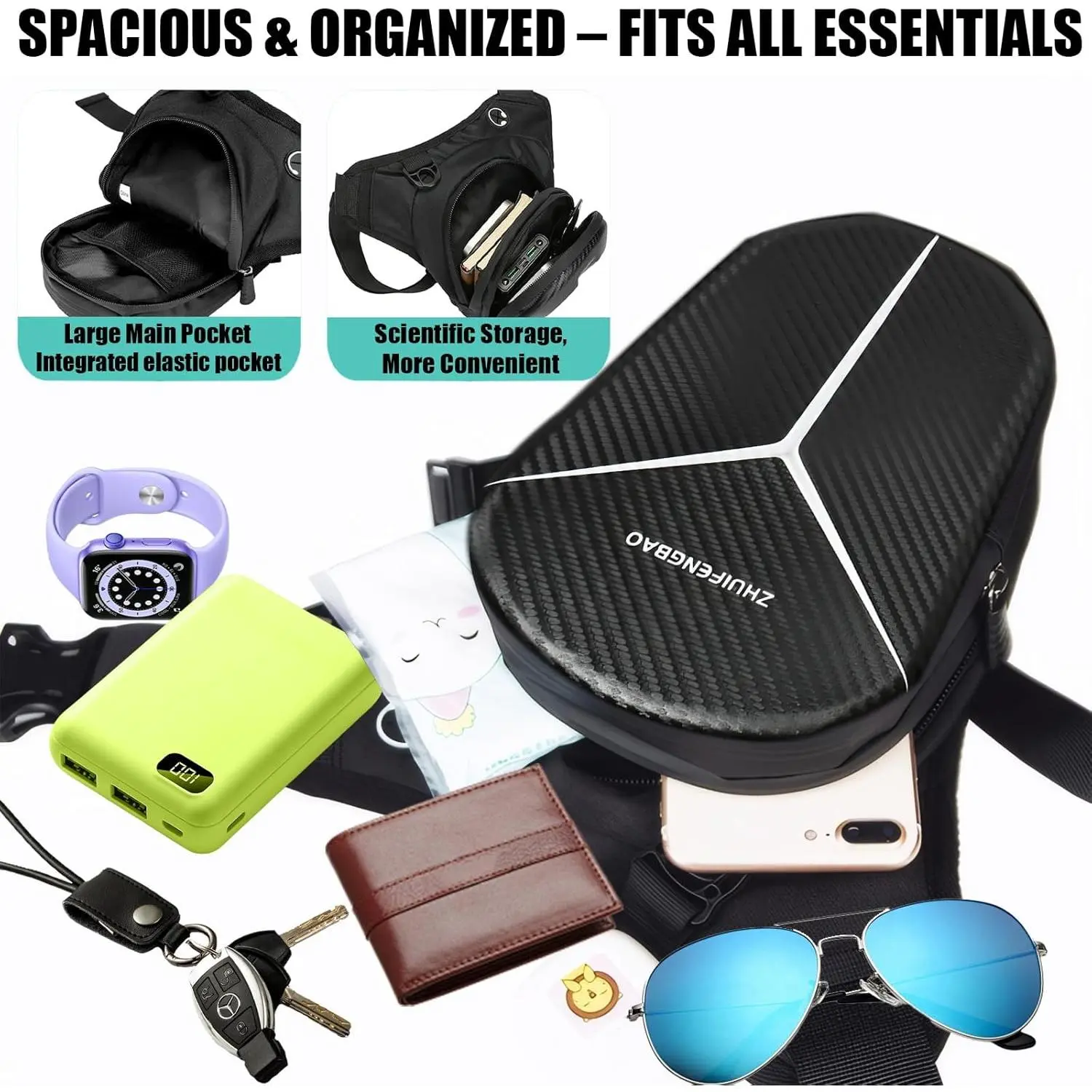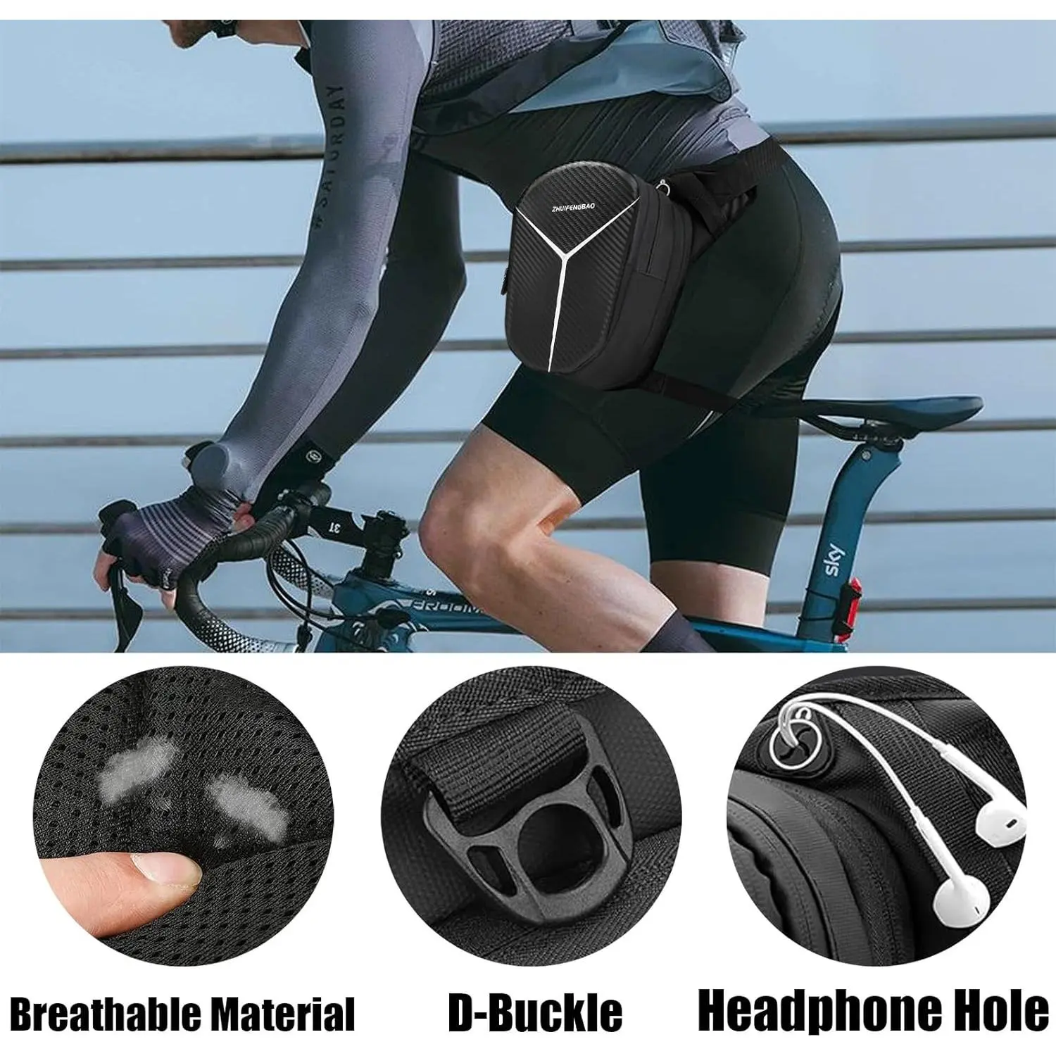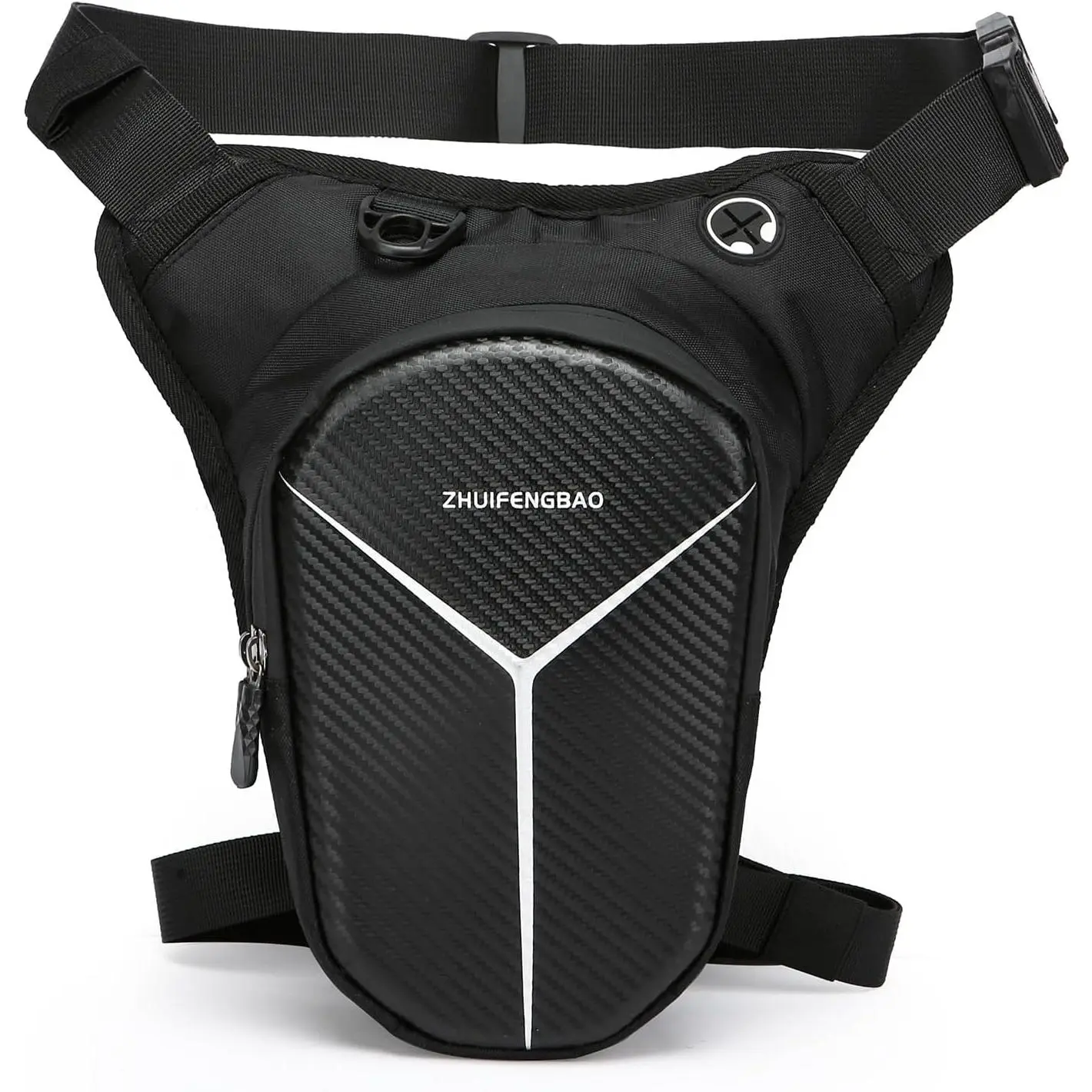 Premium Motorcycle Leg Bag Durable 3-layer EVA shell (carbon fiber texture) Waterproof sealed zipper keeps items dry Main + secondary compartments with mesh pockets Expandable storage for phone, power bank, wallet, bottle, first aid kit Adjustable waist (33"-49") & leg straps (13"-28") 3-gear adjustment for perfect fit Breathable polyester back reduces pressure Quick-access D-ring + headphone jack Converts to waist/chest/sling/tank bag Ideal for biking, camping, travel, etc