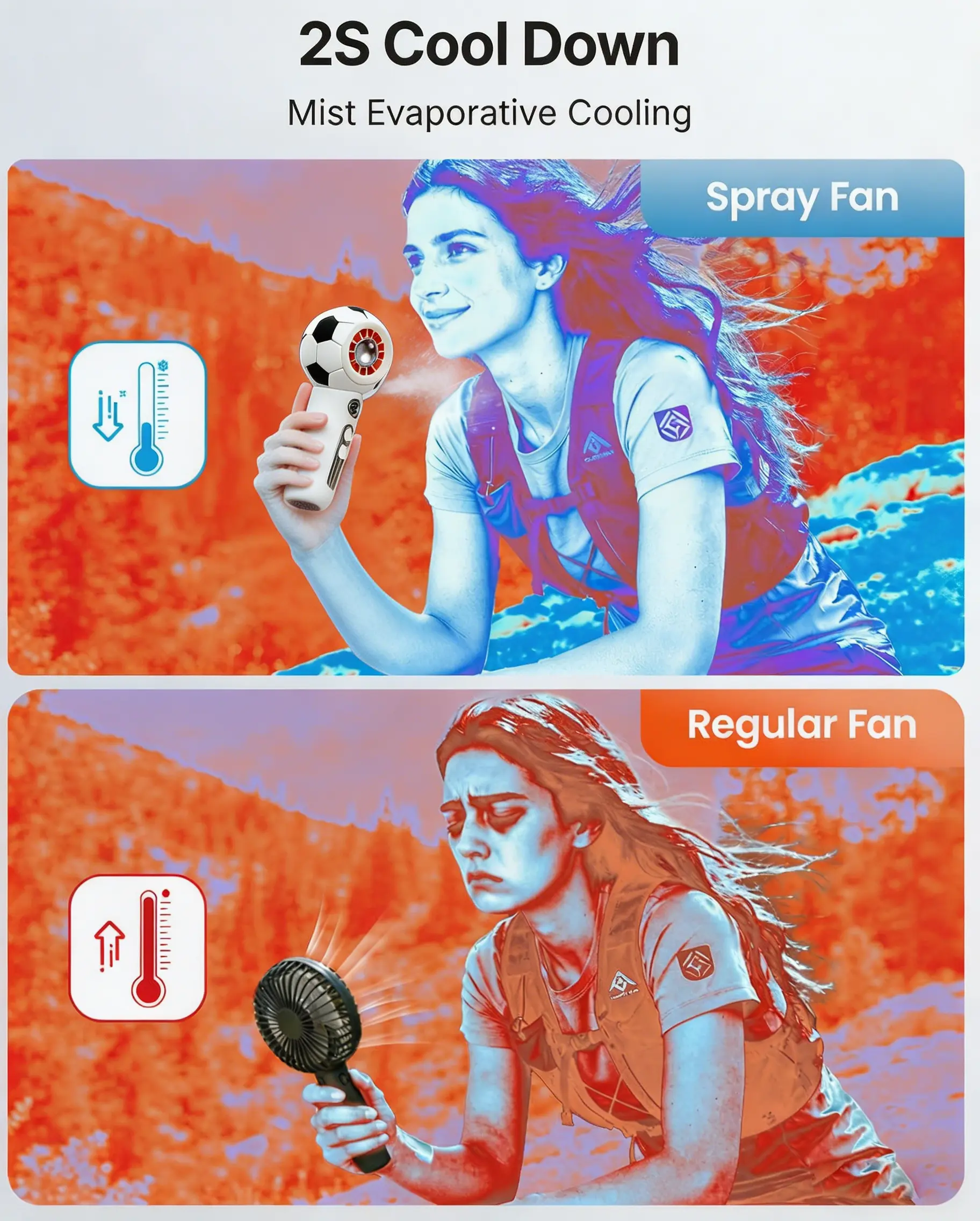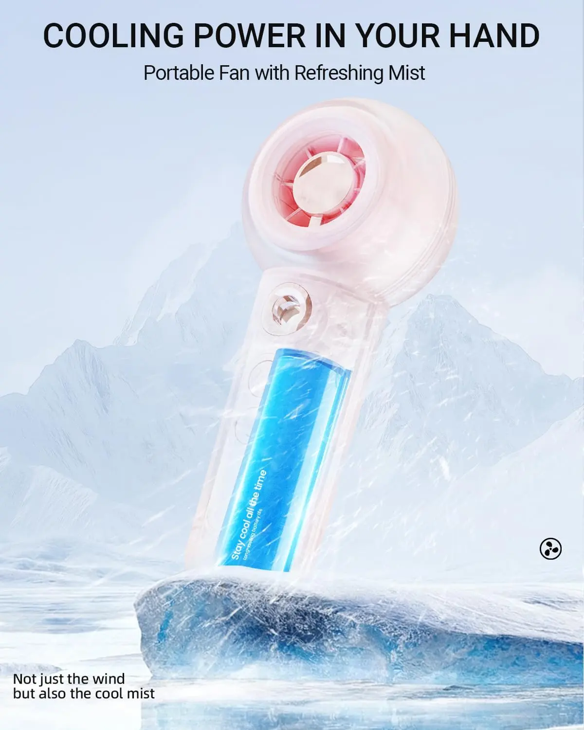 ·22000RPM Turbo Wind Force: The high speed motor drives 7 flow-guiding blades, blowing powerful cold air at 12 m/s, about 4 times stronger than a standard electric hand held fan. With mist,it doubles cooling efficiency