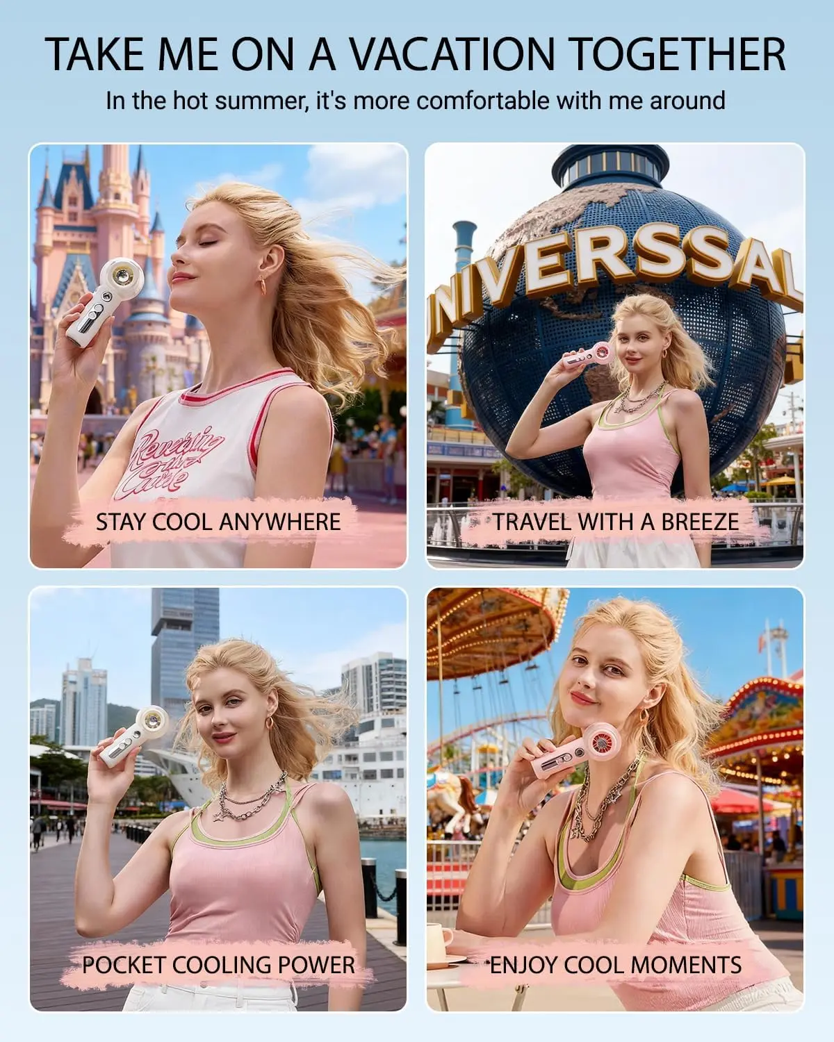 ·Portable & Lightweight: Weighs only 5.18 oz, easy to carry in bags or pockets. Stable base doubles as a desktop fan. Perfect for beach, concerts, camping, hiking and daily use.