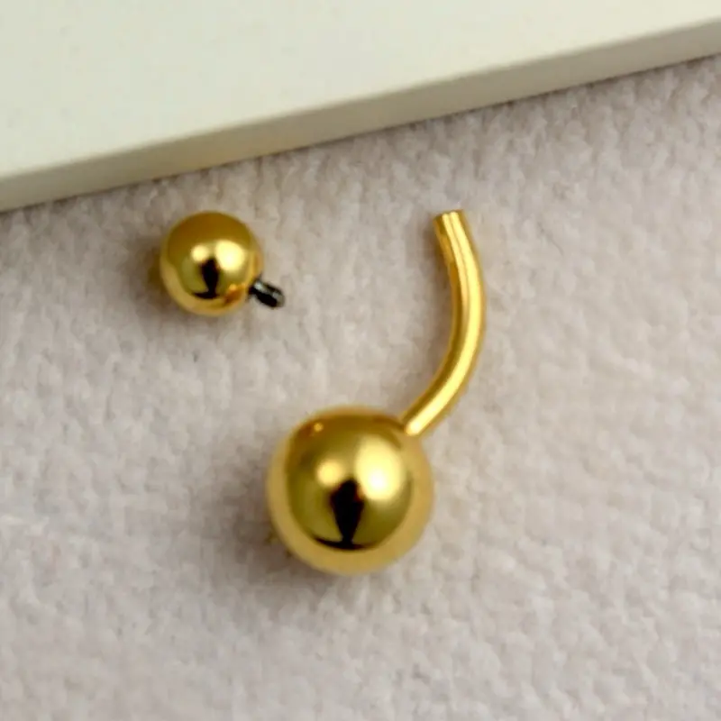 Gold Titanium Belly Ring, 14G Curved Barbell Belly Button Ring, Externally Threaded Navel Piercing, Minimalist Belly Jewelry.