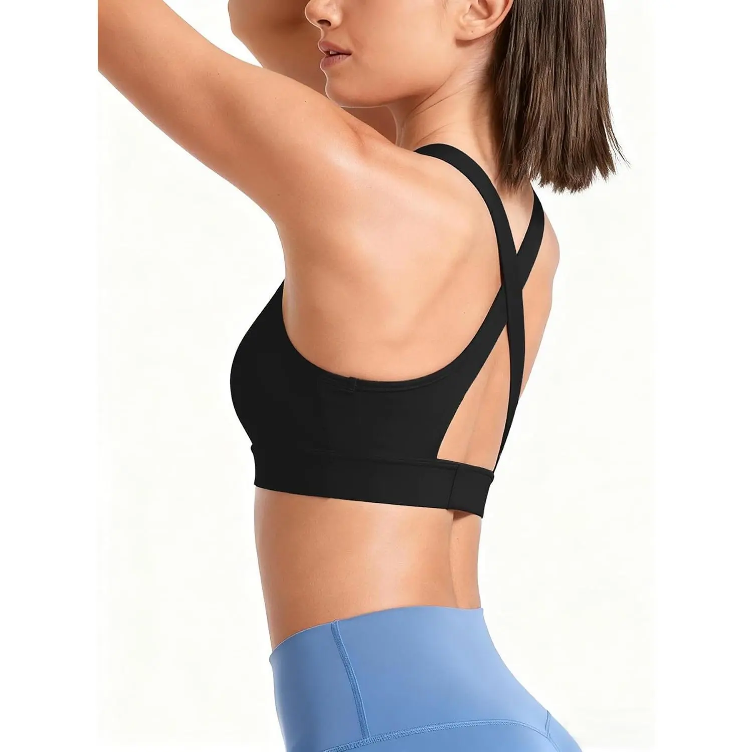 Sports Bra Medium Support with Adjustable Back Clasp – Removable Padded Cup Yoga Bra