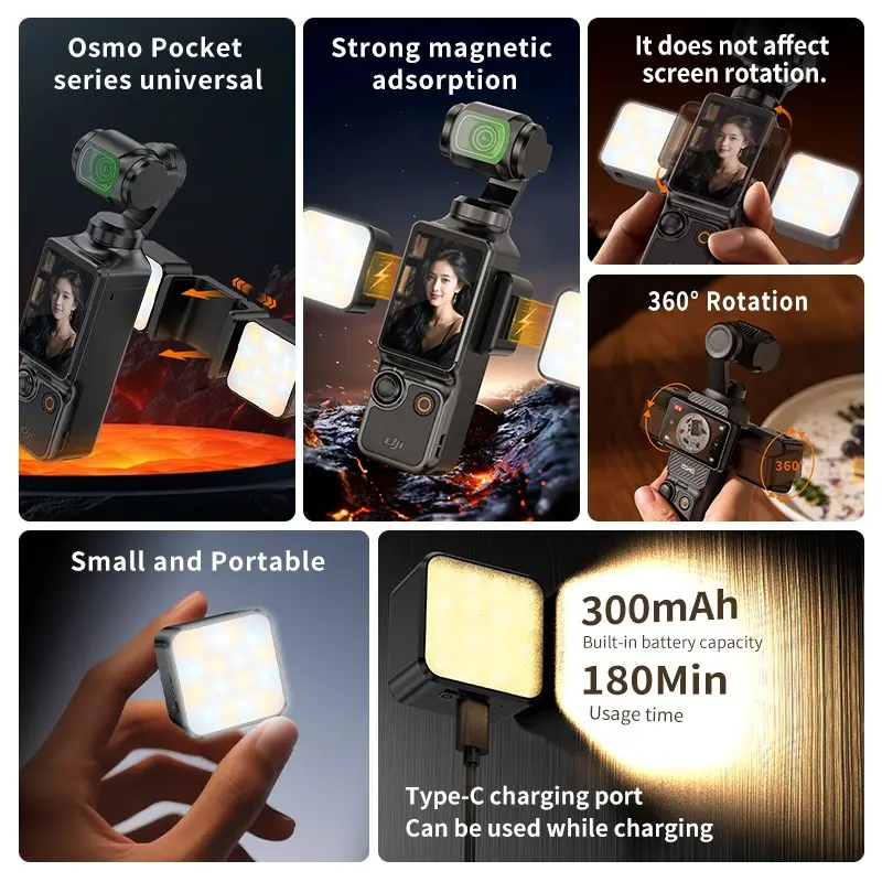 Vlogging Light for DJI Osmo Pocket 3,Magnetic Mini LED Action Camera Video Light Accessories, Quick Release Photography LED Fill Light for Vlog Selfie Video Recording