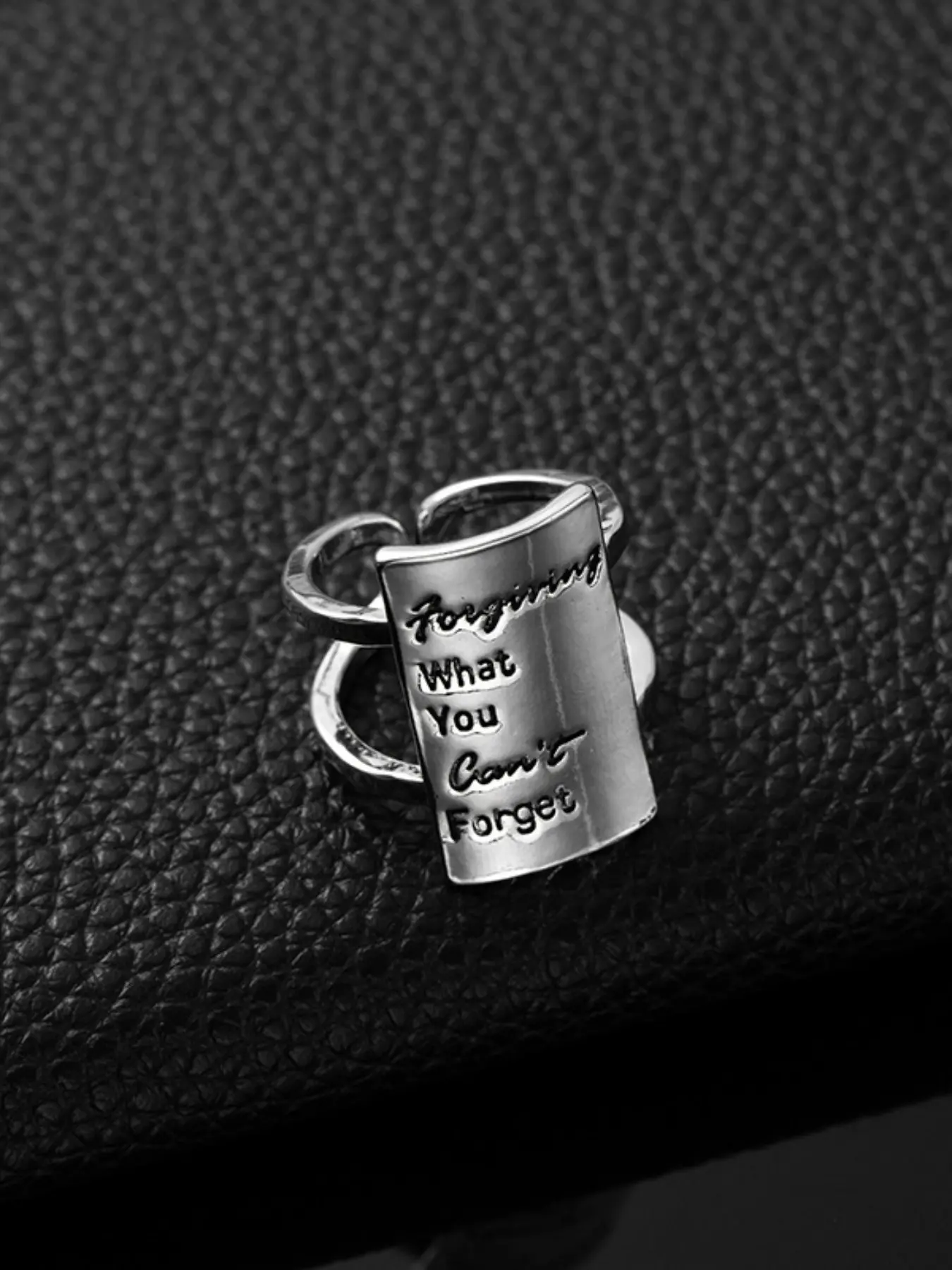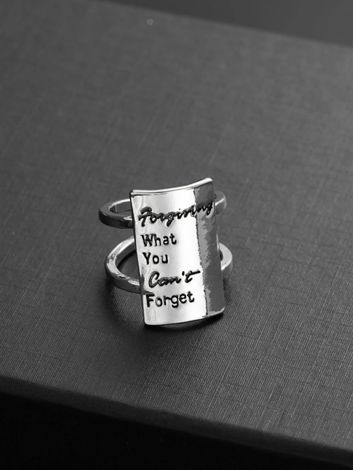 European and American Open Rectangle Letter Memorial Ring, Gratitude Release Kindness Ring, Casual Alloy Chain Material, All Seasons