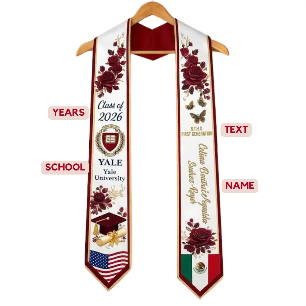 [HOT] Graduation Personalized Mexican Sash 2026, Custom Graduation Mexican American Flag Stole, Mexico Graduation 2026