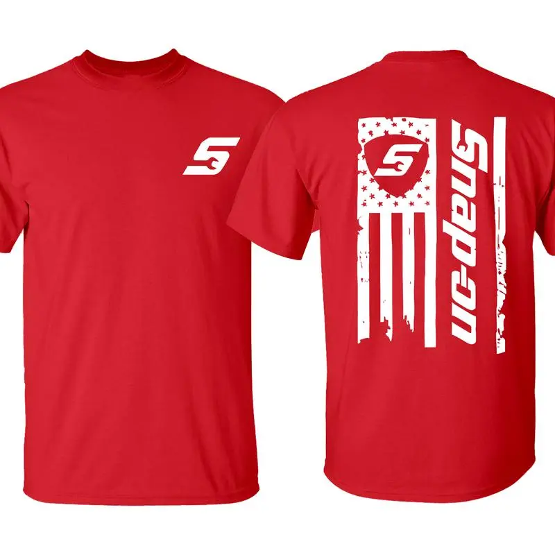 100% pure cotton Snap-On American flag pattern, perfect for garage enthusiasts and car fans, men's clothing top, women's street style T-shirt, regular fit