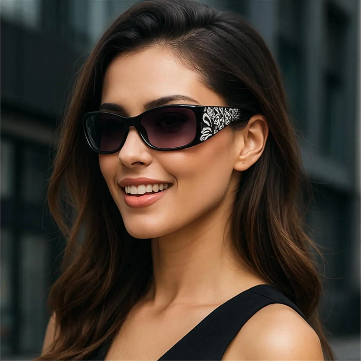 willochra fashion Y2K Polarized Sunglasses for Women Rhinestone Wrap Around Rectangular Sunglasses UV400 Protection