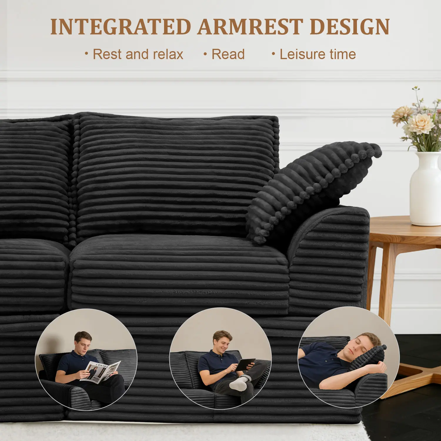 LUXURIOUS CORDUROY & CLOUD COMFORT: Experience the highly desired boneless couch sensation. Wrapped in premium, skin-friendly corduroy fabric and densely packed with high-resilience foam, this sectional couch delivers a soft, sink-in feel that bounces back quickly. It is highly durable and built for daily heavy lounging