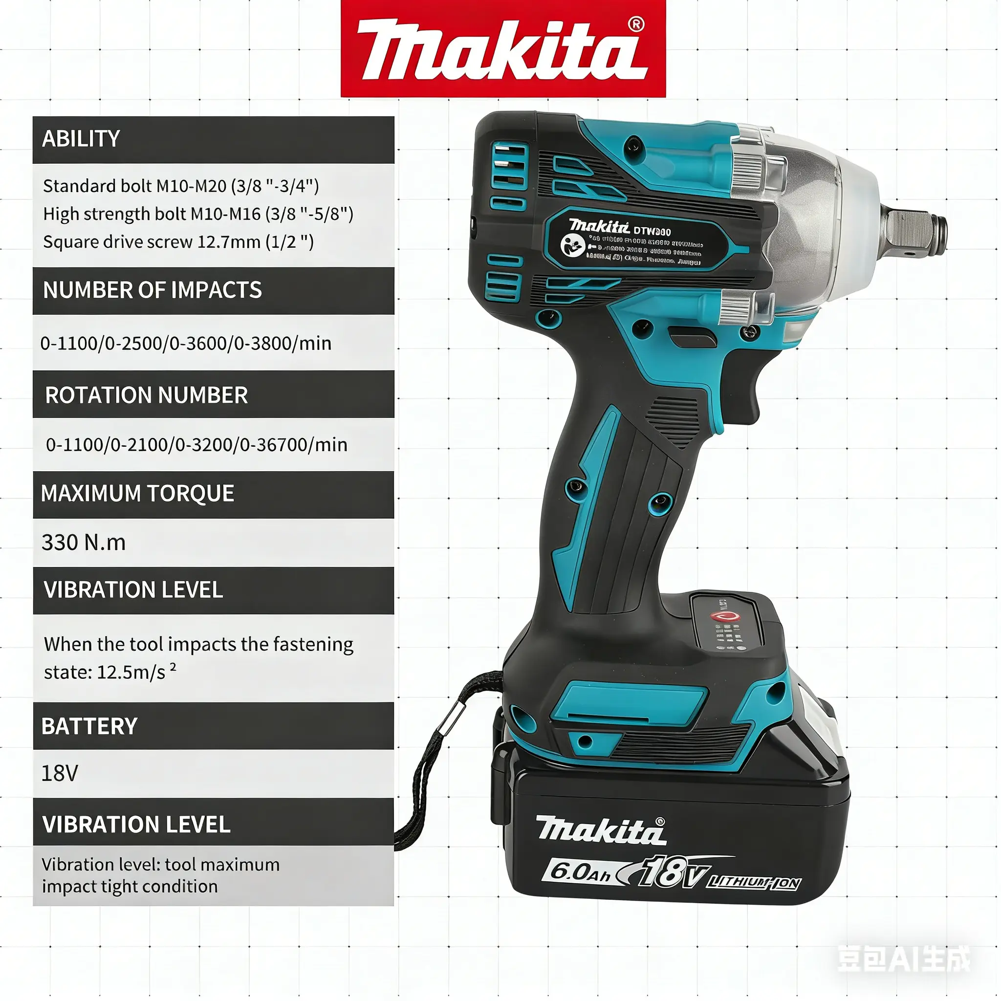 ·330Nm Torque: Provides the necessary force for tough jobs.