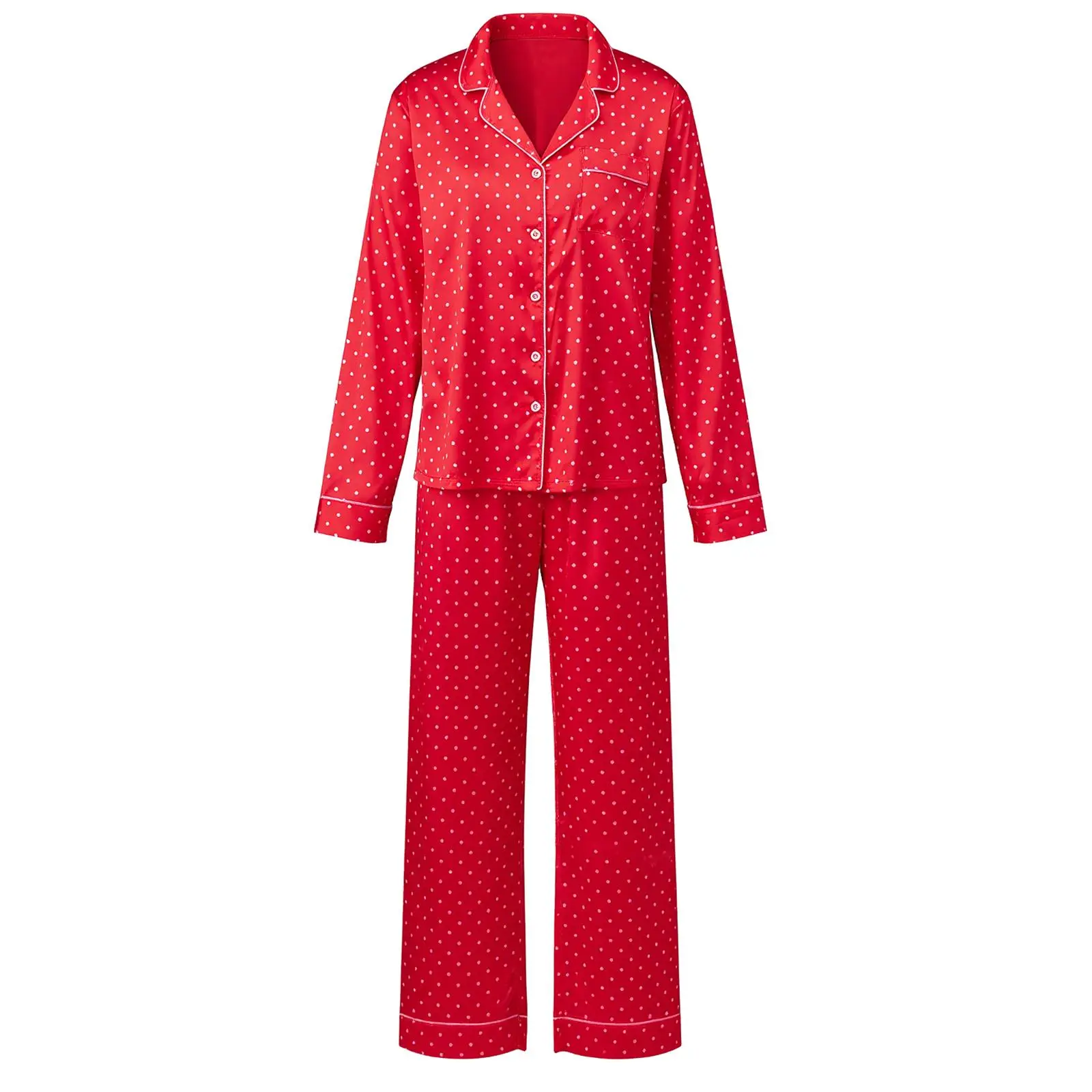 Women's Dot Pajama Sets Fashionable Loose Long Sleeve Button Down Tops with Pants 2Pcs Soft Sleepwear Size (cm) S Tops Length: 62 Shoulder: 43 Bust: 104 Waist: 64 Sleeve: 58 Pants Length: 103 Hip: 108 M Tops Length: 63 Shoulder: 44 Bust: 108 Waist: 68 Sleeve: 59 Pants Length: 104 Hip: 112 L Tops Length: 64 Shoulder: 45.5 Bust: 114 Waist: 74 Sleeve: 60 Pants Length: 105 Hip: 118 XL Tops Length: 65 Shoulder: 47 Bust: 120 Waist: 80 Sleeve: 61 Pants Length: 106 Hip: 124 Size (inch) S Tops Length: 24.41 Shoulder: 16.93 Bust: 40.94 Waist: 25.2 Sleeve: 22.83 Pants Length: 40.55 Hip: 42.52 M Tops Length: 24.8 Shoulder: 17.32 Bust: 42.52 Waist: 26.77 Sleeve: 23.23 Pants Length: 40.94 Hip: 44.09 L Tops Length: 25.2 Shoulder: 17.91 Bust: 44.88 Waist: 29.13 Sleeve: 23.62 Pants Length: 41.34 Hip: 46.46 XL Tops Length: 25.59 Shoulder: 18.5 Bust: 47.24 Waist: 31.5 Sleeve: 24.02 Pants Length: 41.73 Hip: 48.82 Specification: Condition: 100% Brand New Material: 97% Polyester and 3% Elastane Gender: Women Pattern: Dot Sleeve: Long Sleeve Package Including: 1* Pajama Set (1* Tops, 1* Pants) Note: There may be 1-2 cm deviation in different sizes, locations and stretch of fabrics. Size chart is for reference only; there may be a little difference with what you get. Color may be lighter or darker due to the different PC display. Promise If the product has any quality problems, please let us know and we will help you solve it as soon as possible.