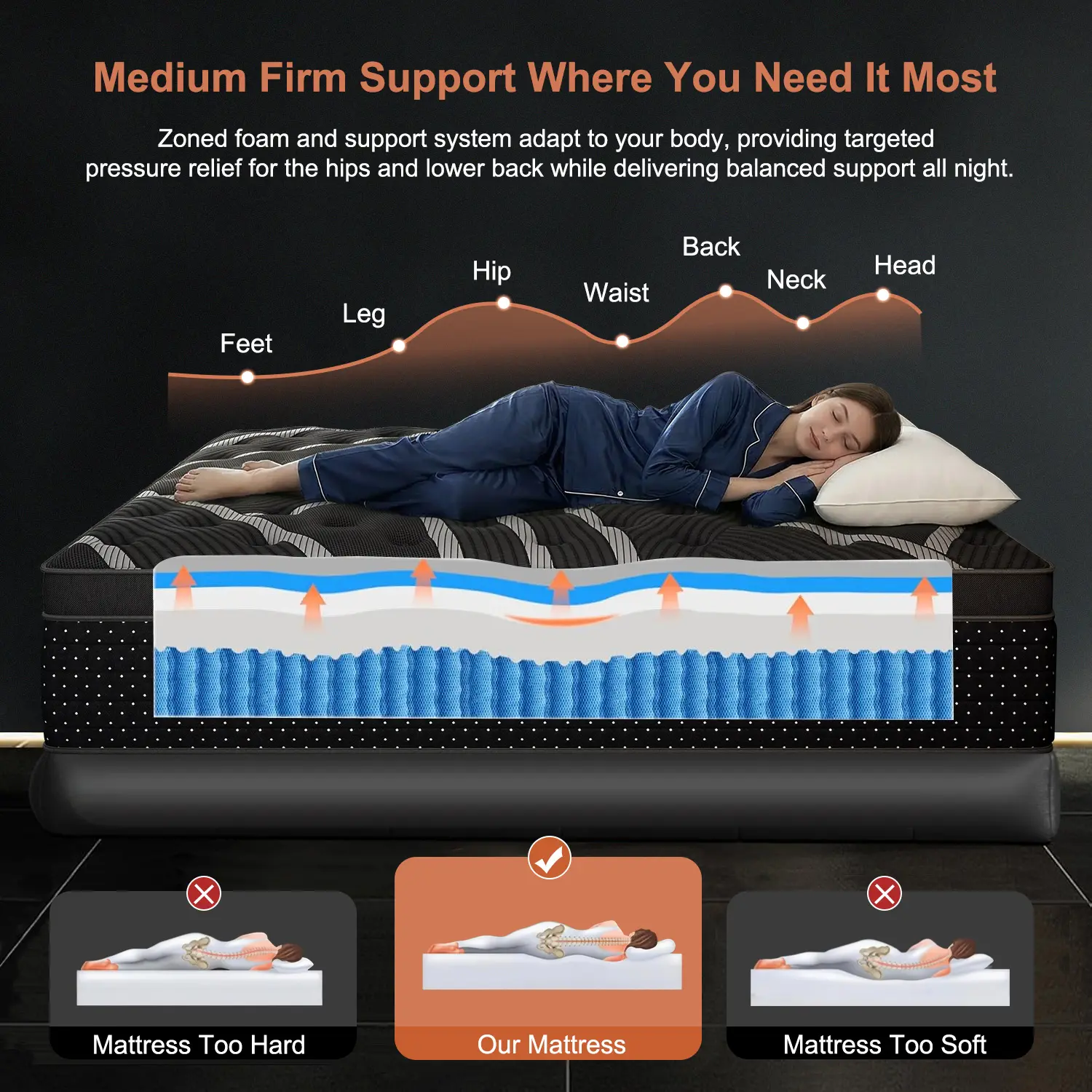 12/14 Inch Twin Full Queen King Mattress Memory Foam And Spring Hybrid Mattress Medium Firmness, Lumbar Support, For Home Rooms Hotels, Boxed Halloween ChristmasGift Furniture Ergonomic mattress Interior Modern