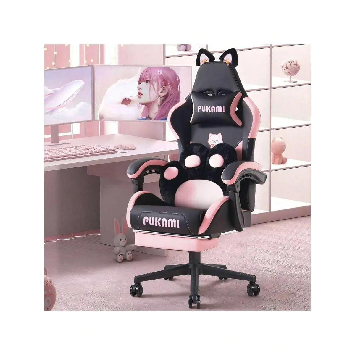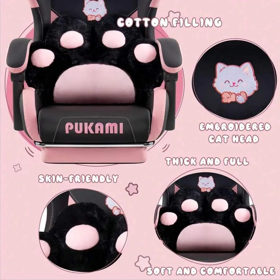 Super Cute: We've added cute cat ears to this gaming chair by replacing the regular lumbar pillow with a cat paw shaped lumbar pillow, and the cat head embroidery on the backrest makes the chair even more vivid and cute.The cat ears are removable, so you can replace them with your favourite decorations