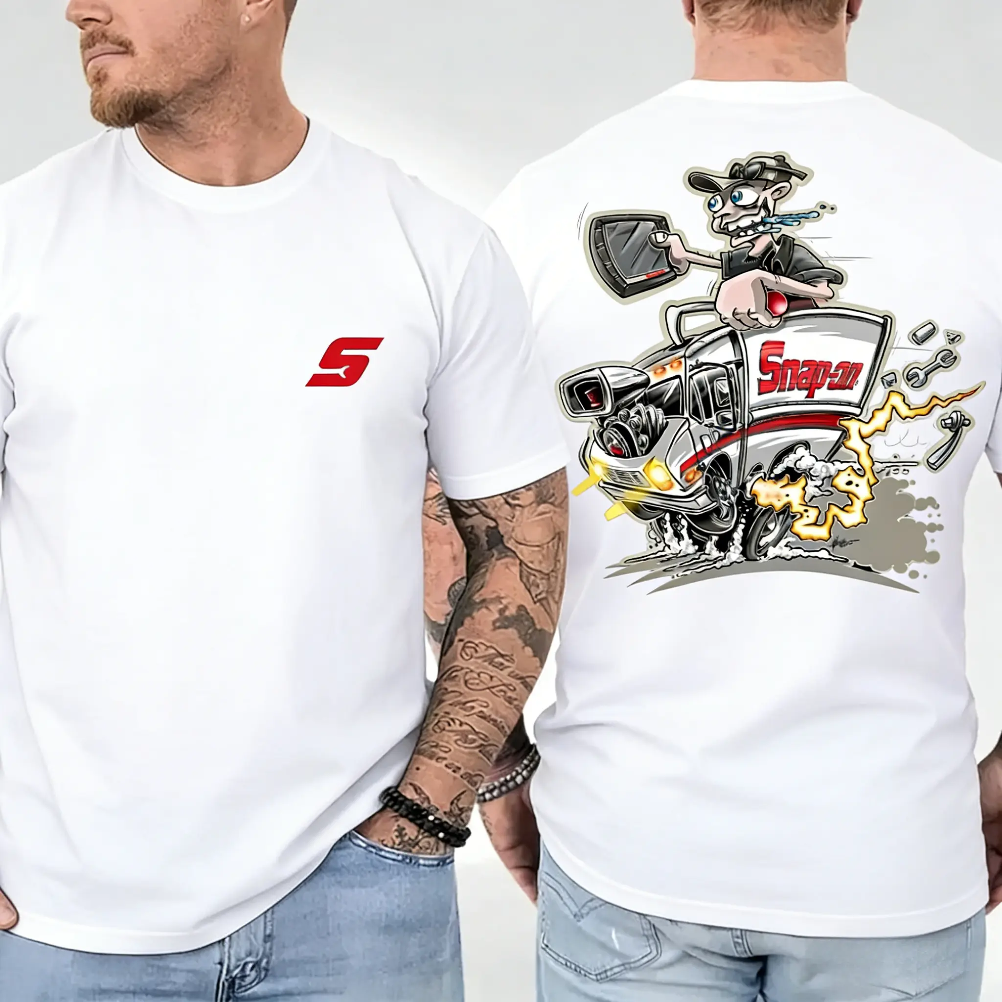 Snap-On retro modified car mechanic T-shirt, vintage truck and car pattern T-shirt, 100% cotton unisex crew neck, casual garage men's clothing, gift for car enthusiasts, gift for truck enthusiasts, gift for mechanics