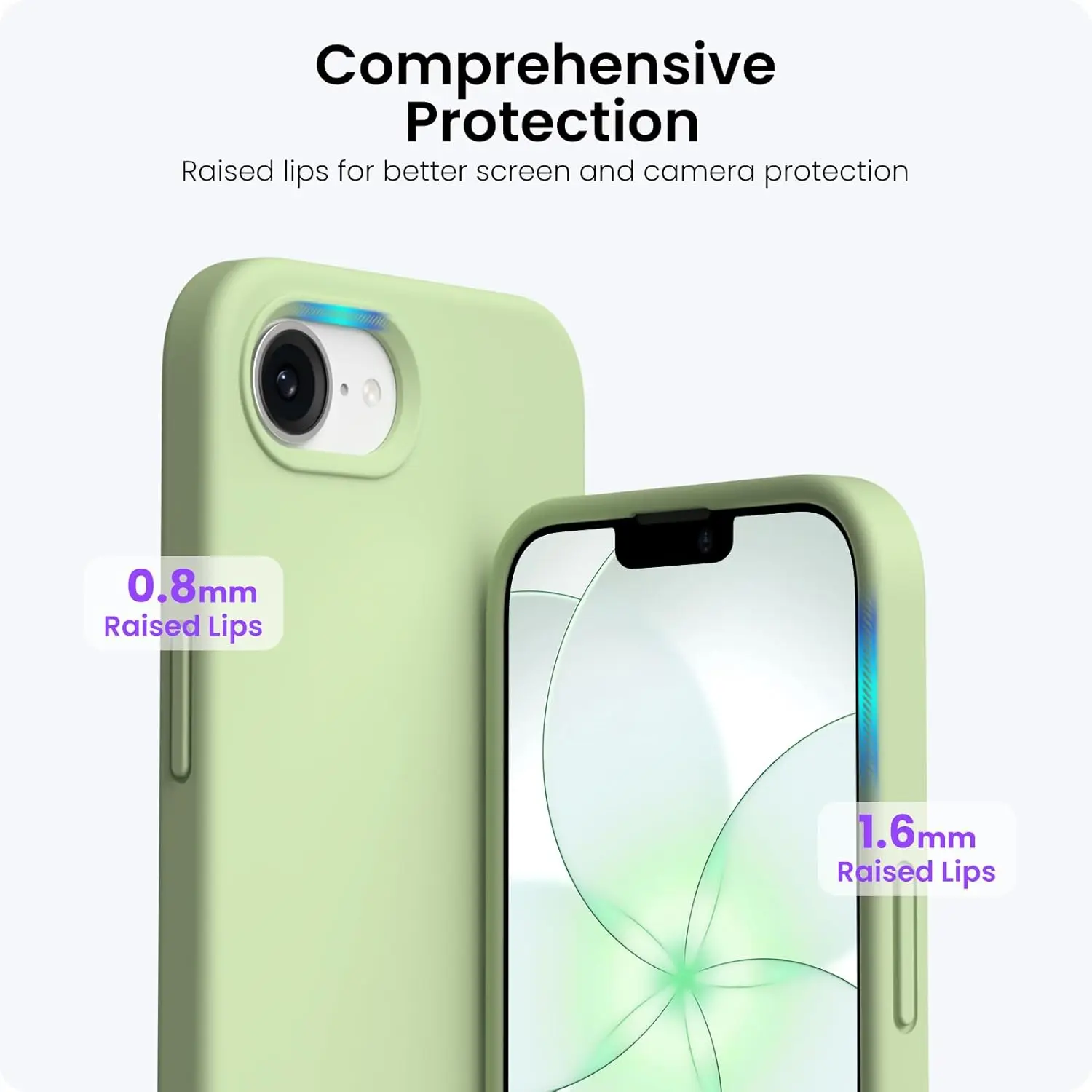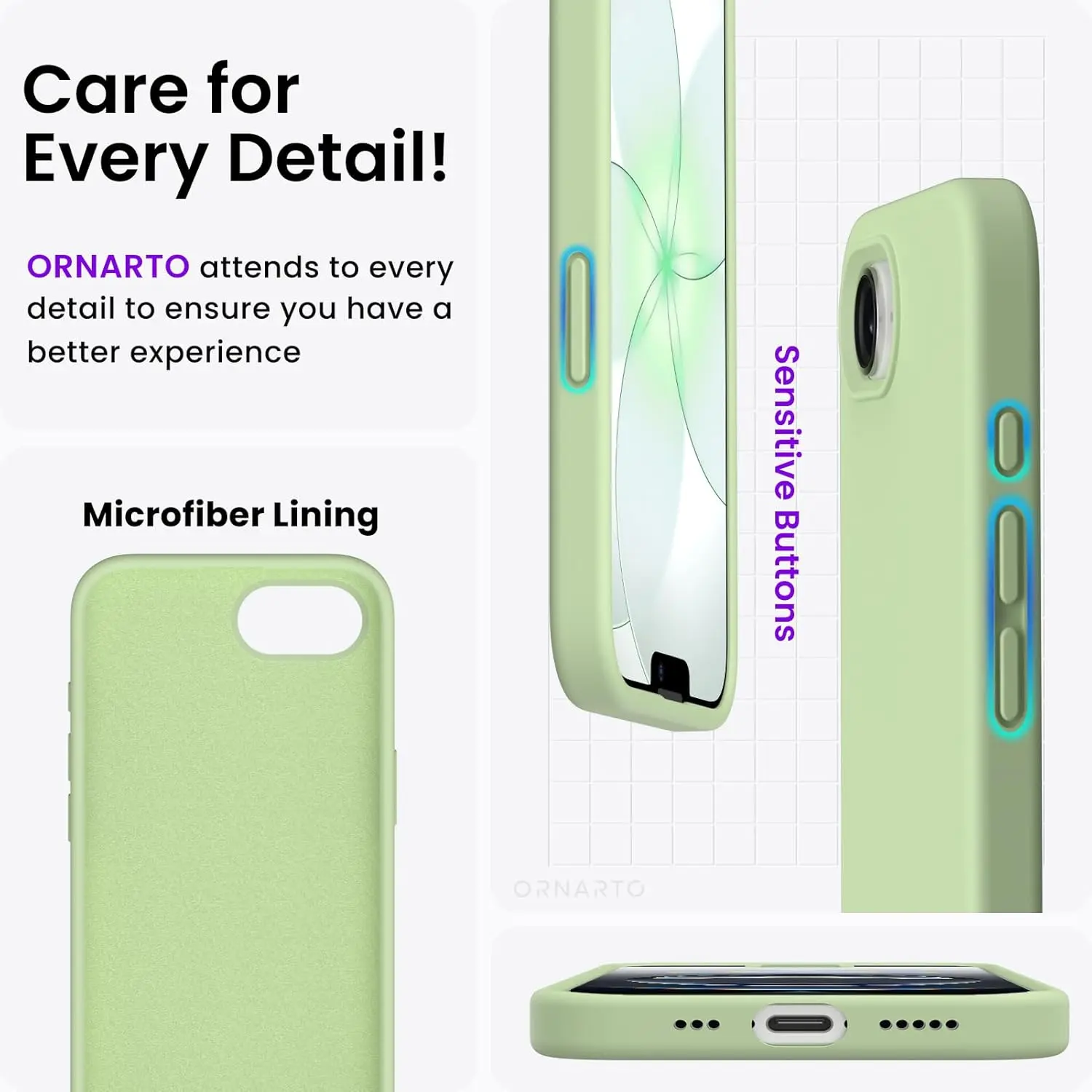 ORNARTO Compatible with iPhone 17e Case and for iPhone 16e Case 6.1", Liquid Silicone 3 Layers Full Covered Soft Gel Rubber Shockproof Cover, Protective Phone Cases for 16e & 17e-Matcha