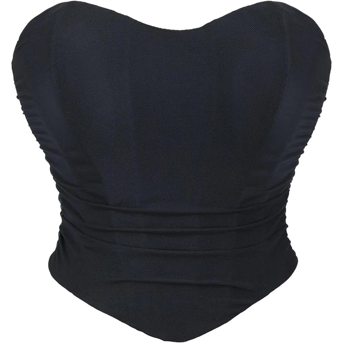 Women Black Mesh Corset Tops Sexy Strapless Crop Top Boned Lace Up Bustier Bra