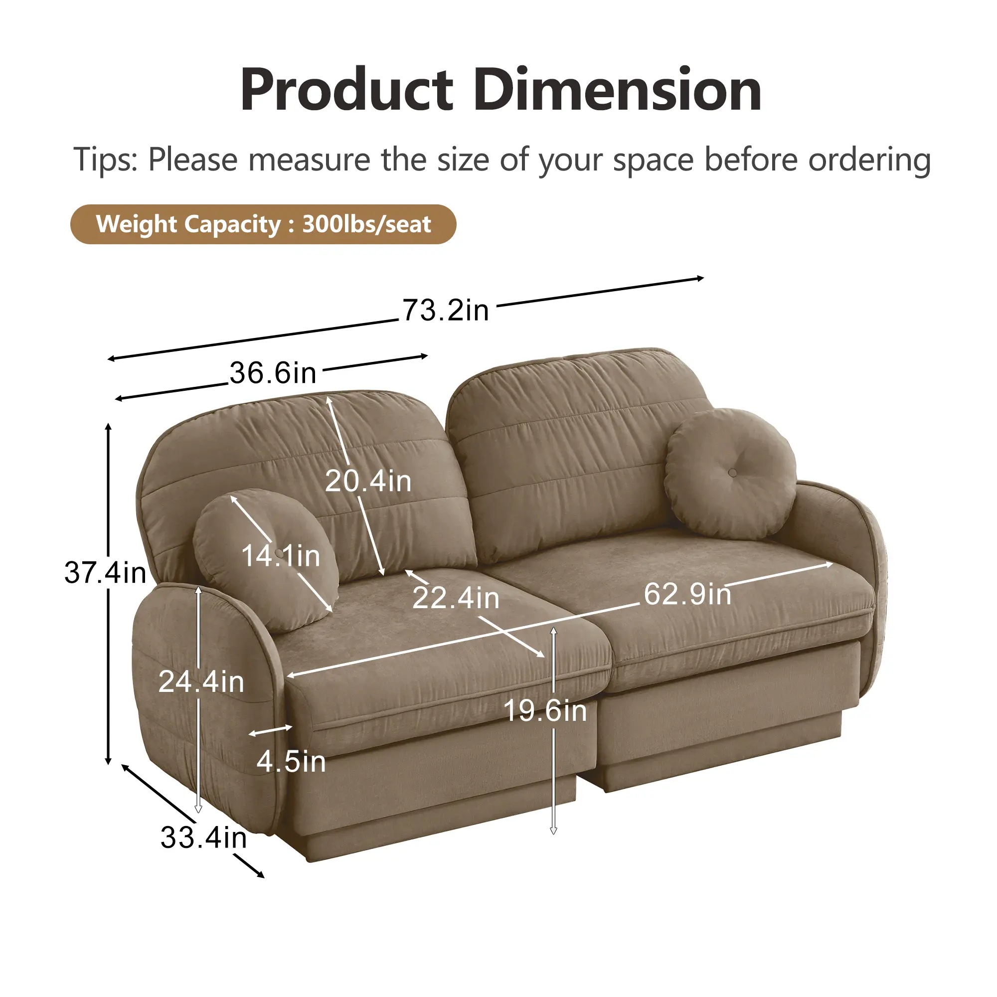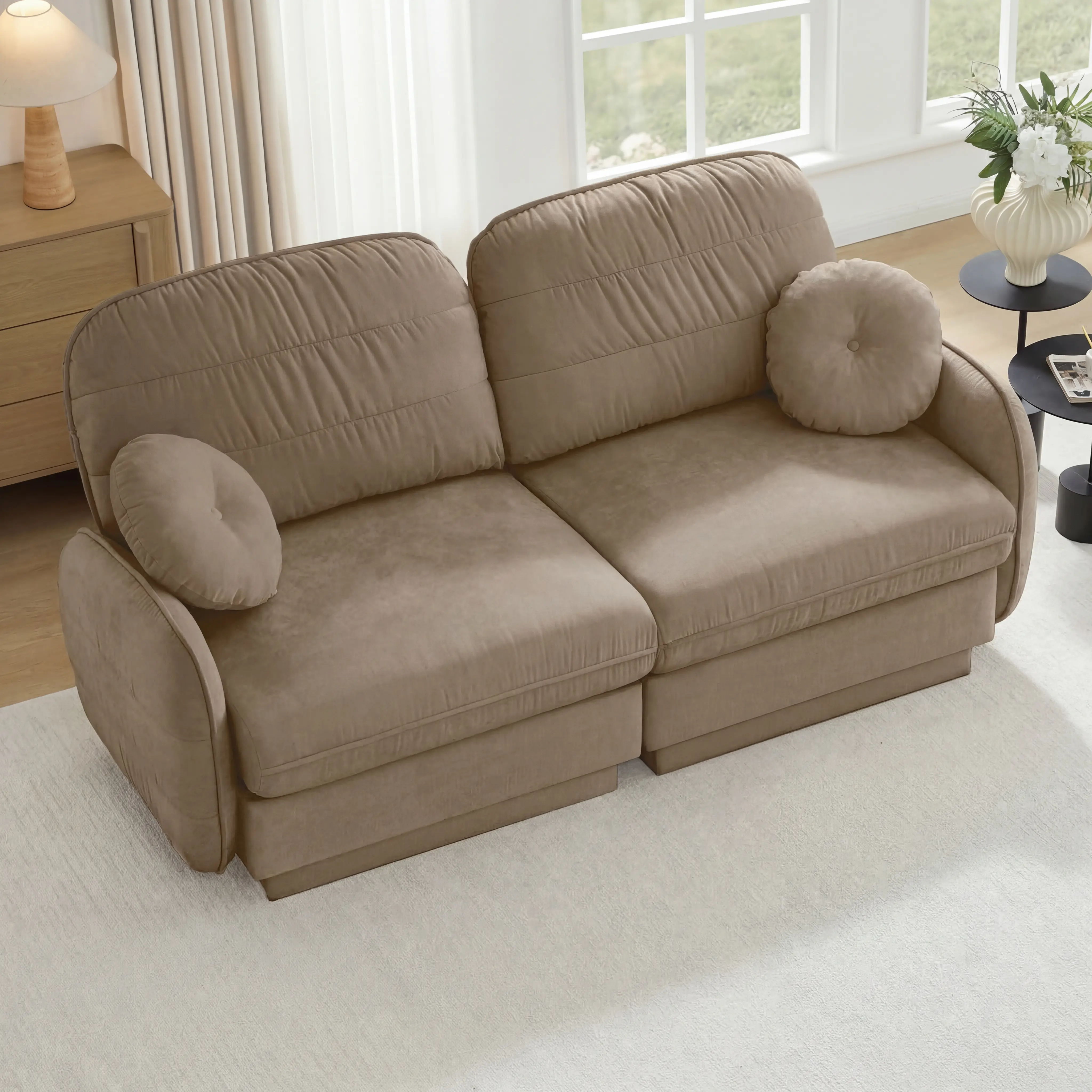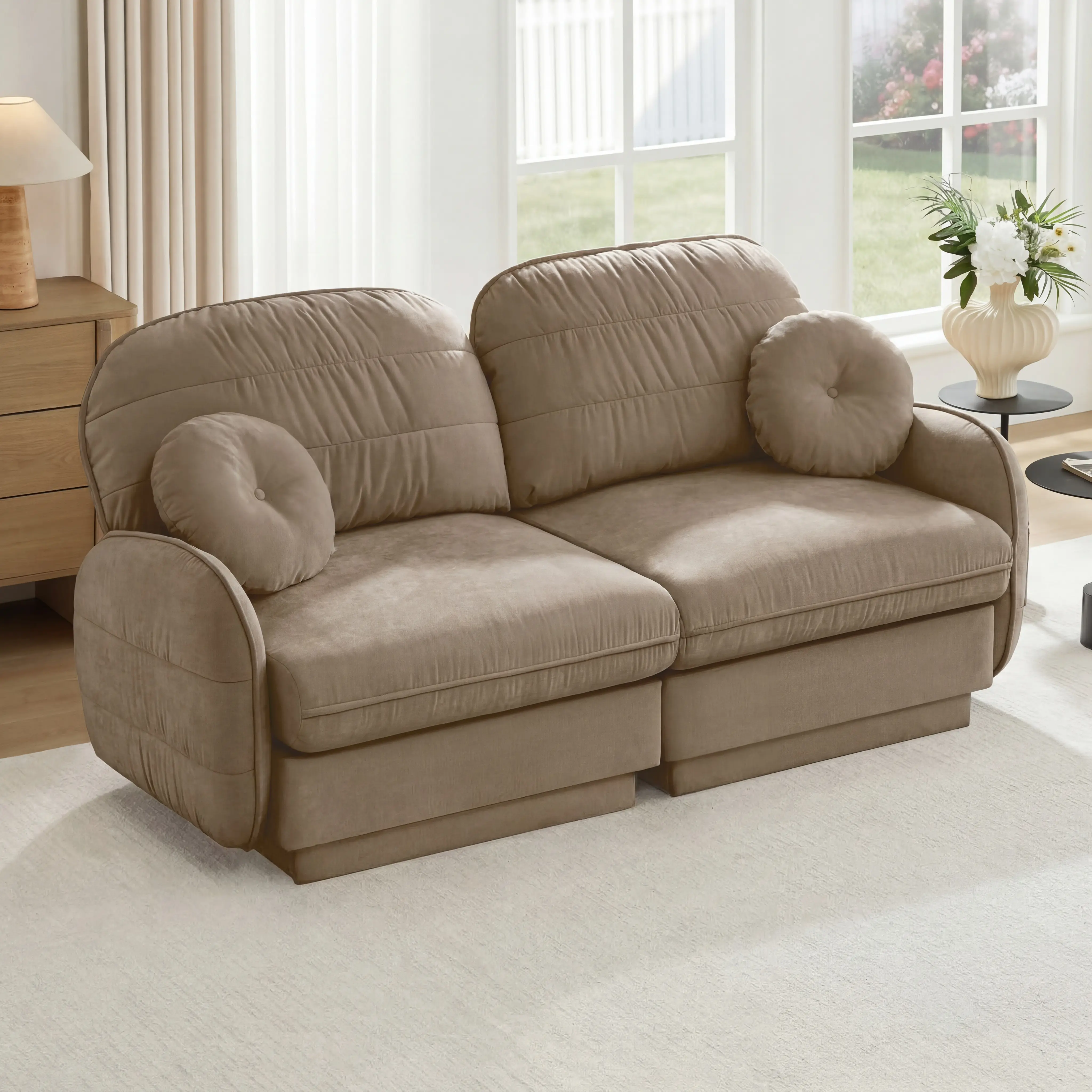 It features soft round pillows and delicate quilted back cushions that bring you gentle support and a relaxing feeling.