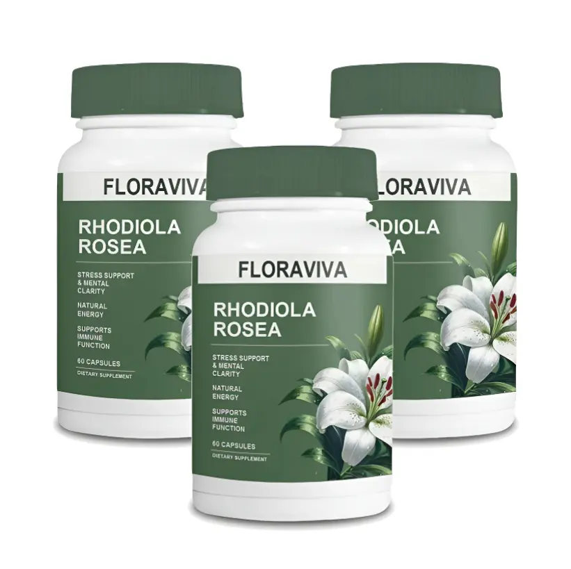 3 Bottles of Floraviva Natural Rhodiola Rosea Wellness Capsules 500mg - Natural Adaptogen Supplement for Stress Support, Mental Focus & Energy - | boost immune repair | Boosts Energy&Stamina (60 Capsules)