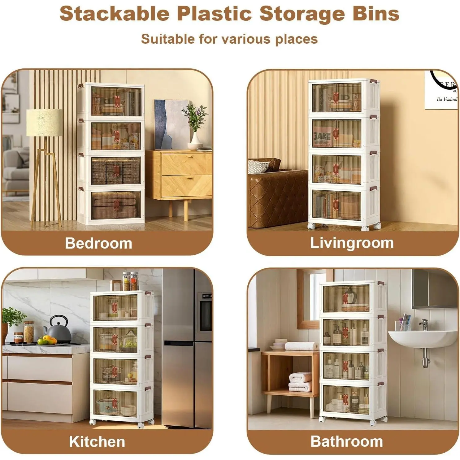 ·Stackable and Movable Design: These stackable storage boxes offer seamless space-saving design, featuring snap switches and grooves for stability when stacked. The collapsible design ensures compactness and easy splitting.They have 360° smooth wheels on the bottom for easy movement while cleaning or reorganizing.
