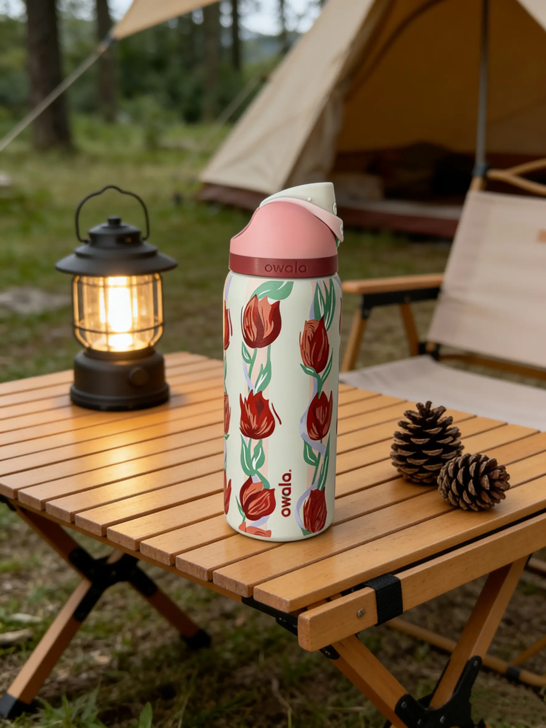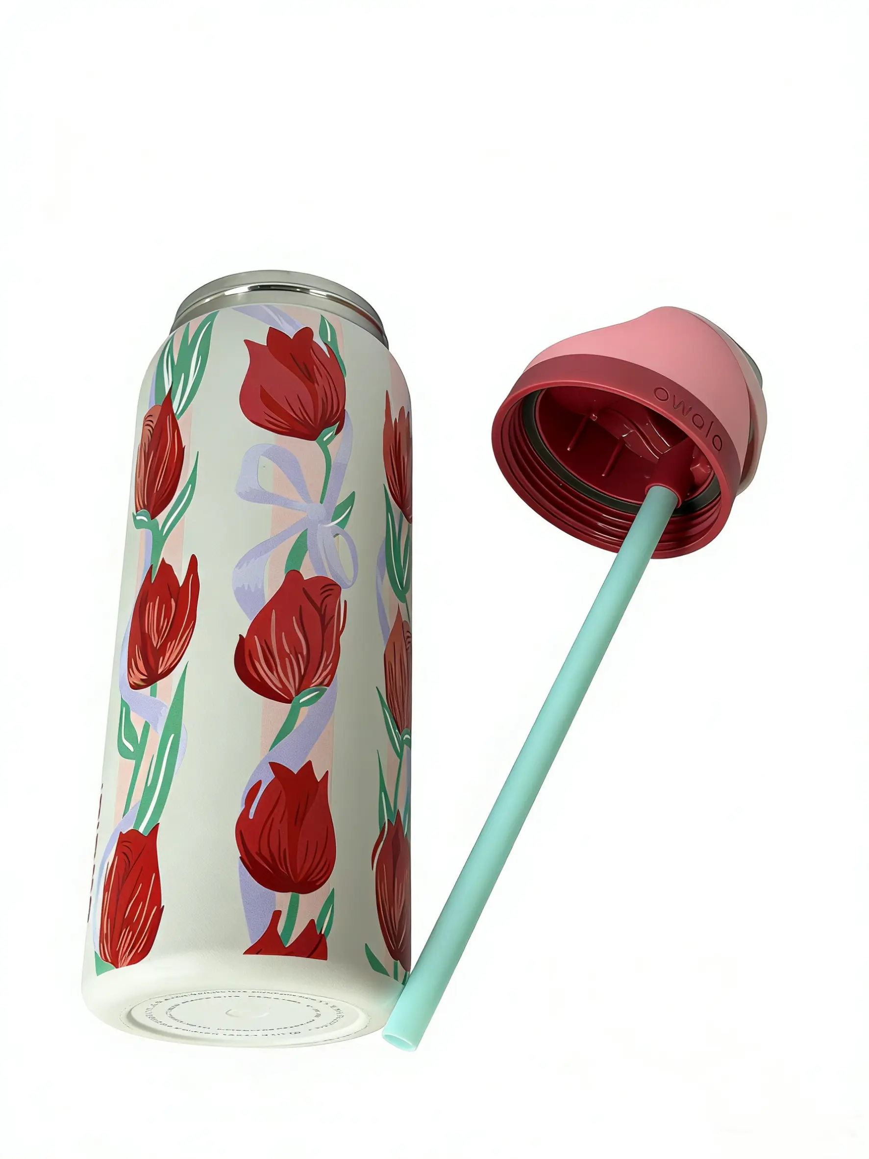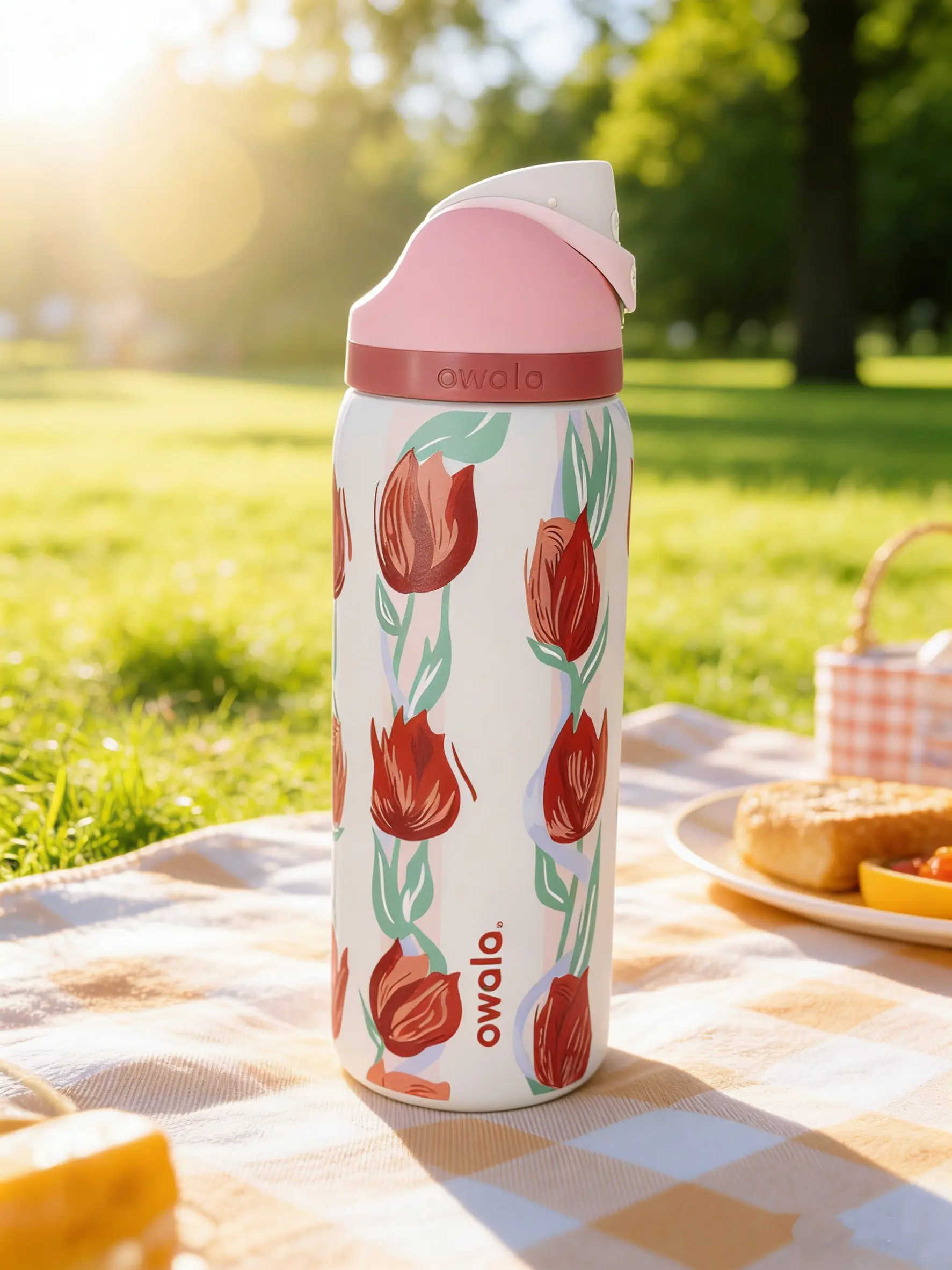 Stay hydrated with the Owala 32oz Insulated Water Bottle. This tulip print bottle is perfect for hiking and travel. It features a leak-proof design, ensuring your drink stays contained. Enjoy 24hr cold retention, keeping your beverages refreshingly cold. Ideal for outdoor adventures, this bottle is a must-have for your travel kit.
