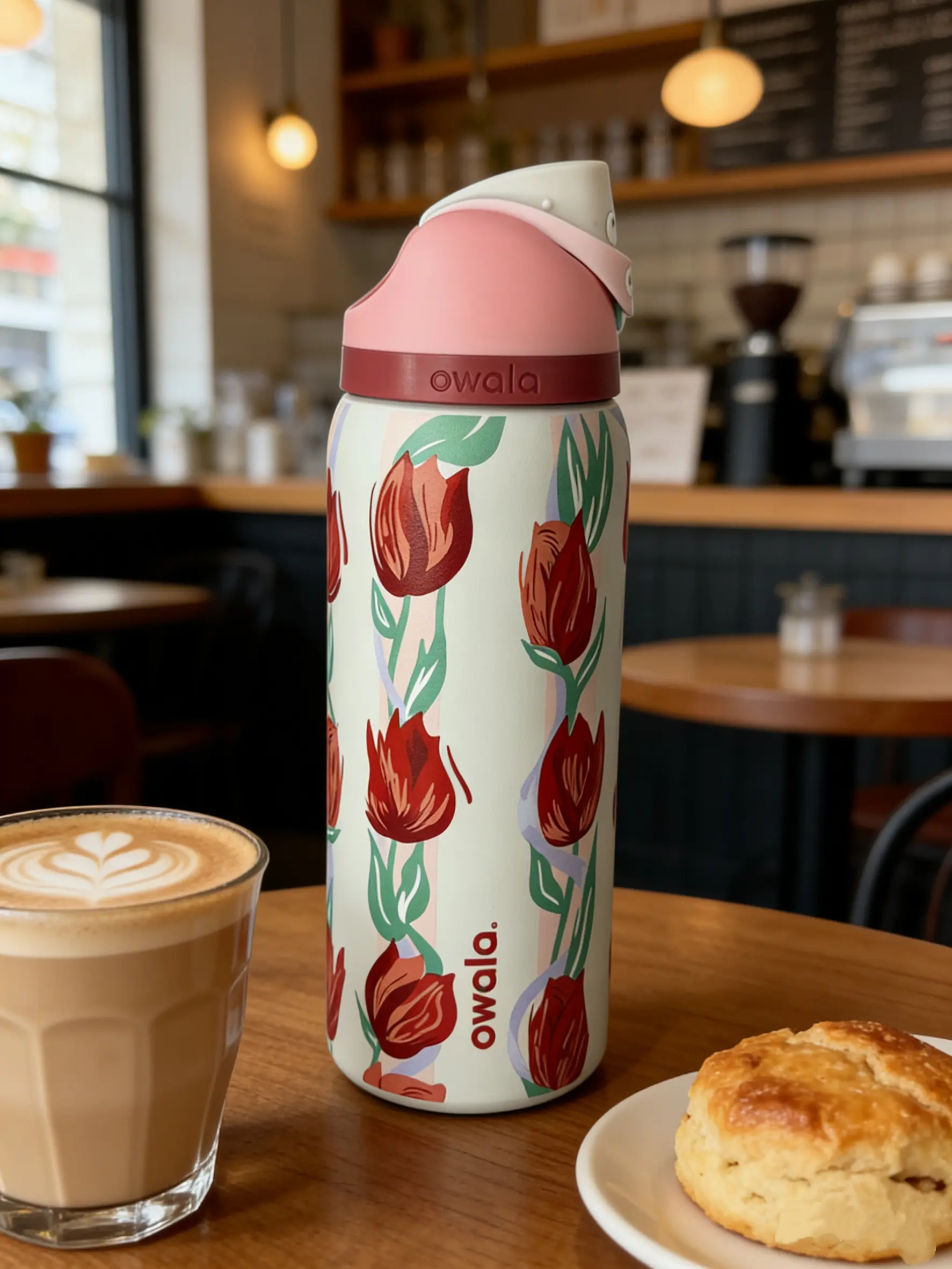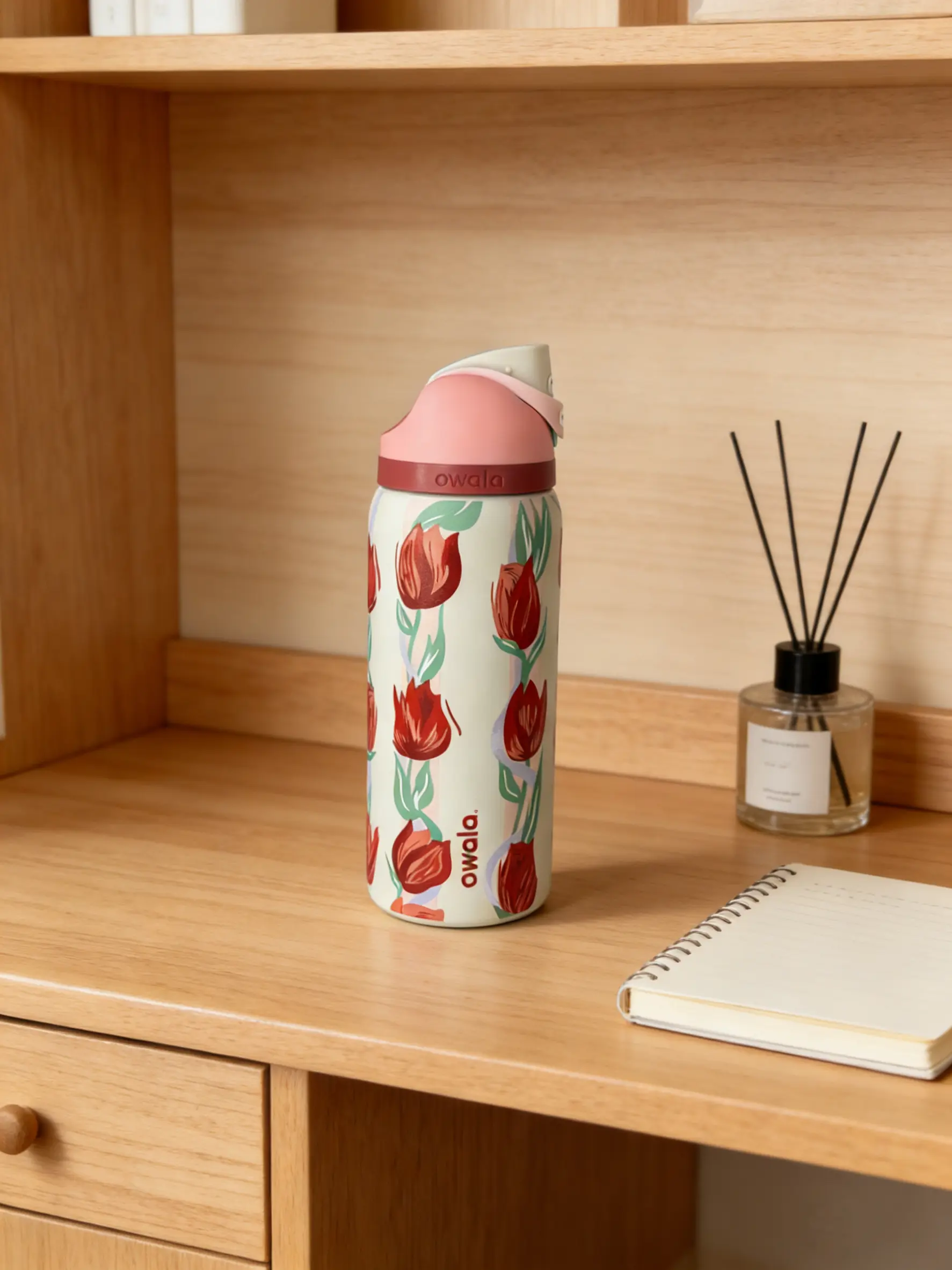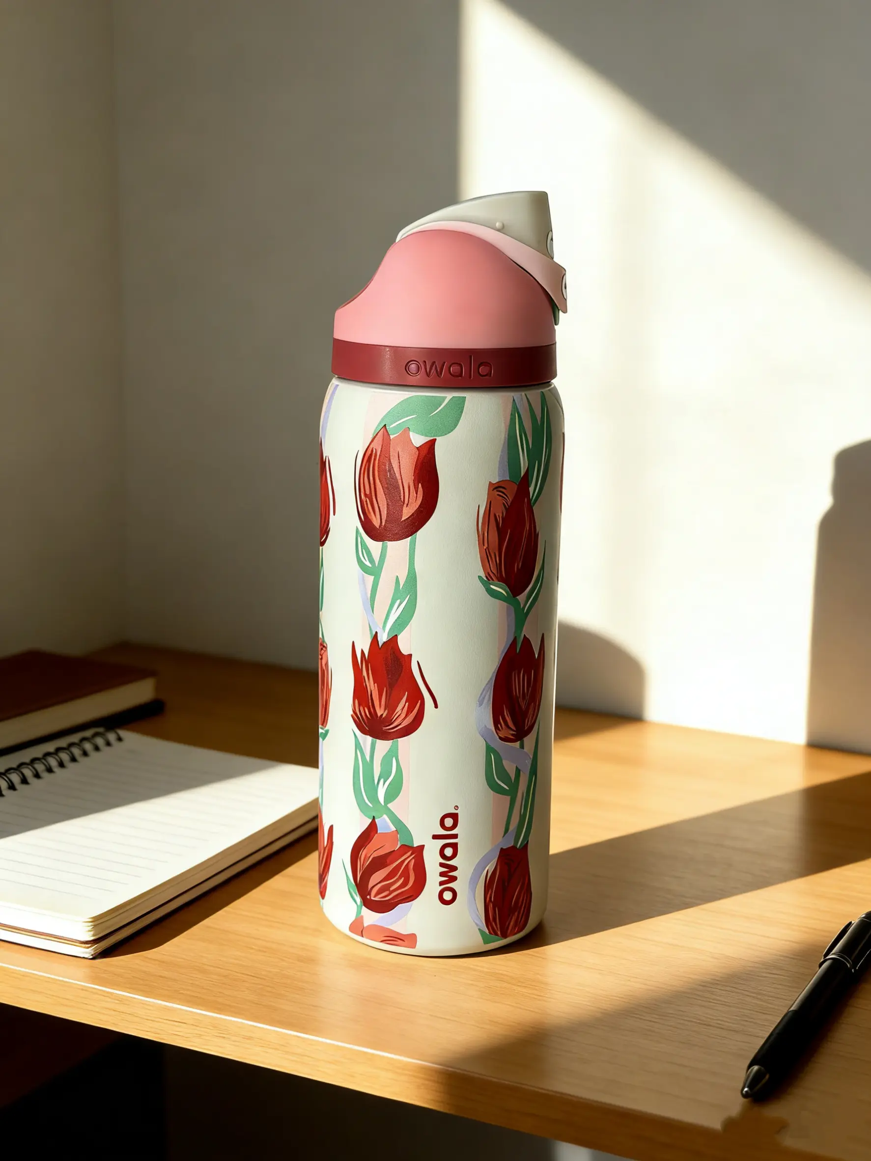 Stay hydrated with the Owala 32oz Insulated Water Bottle. This tulip print bottle is perfect for hiking and travel. It features a leak-proof design, ensuring your drink stays contained. Enjoy 24hr cold retention, keeping your beverages refreshingly cold. Ideal for outdoor adventures, this bottle is a must-have for your travel kit.