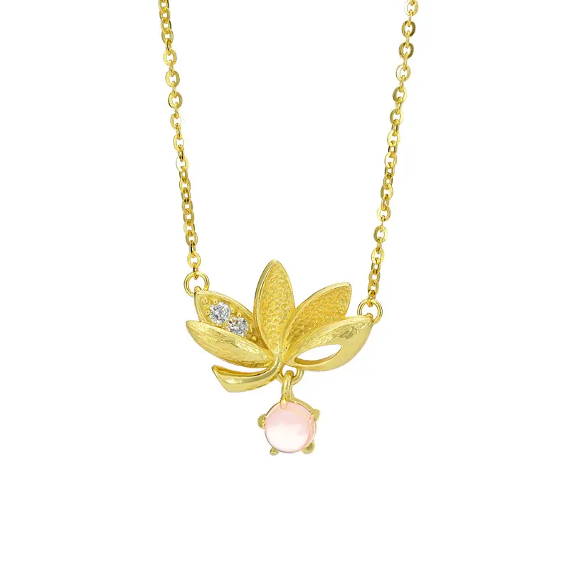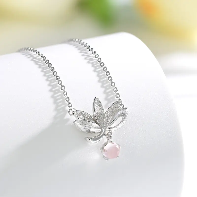 Twelve Flower Order Rose Quartz Necklace | S925 Sterling Silver Lotus Pendant, Unique Design Collarbone Chain, Fashionable Premium Zirconia Gift