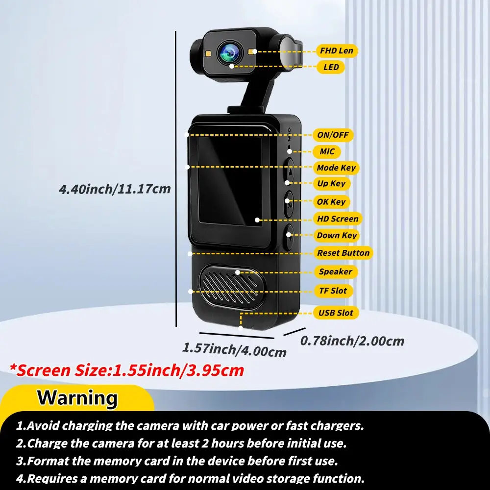 Vlogging camera is equipped with a 1.57-inch HD display, featuring a compact and lightweight design. With ultra-clear 1080P resolution and an infrared fill light, it allows you to capture high-definition images even at night. Perfect for police enforcement, vlogging, outdoor sports, indoor fitness, pet life recording, and more.