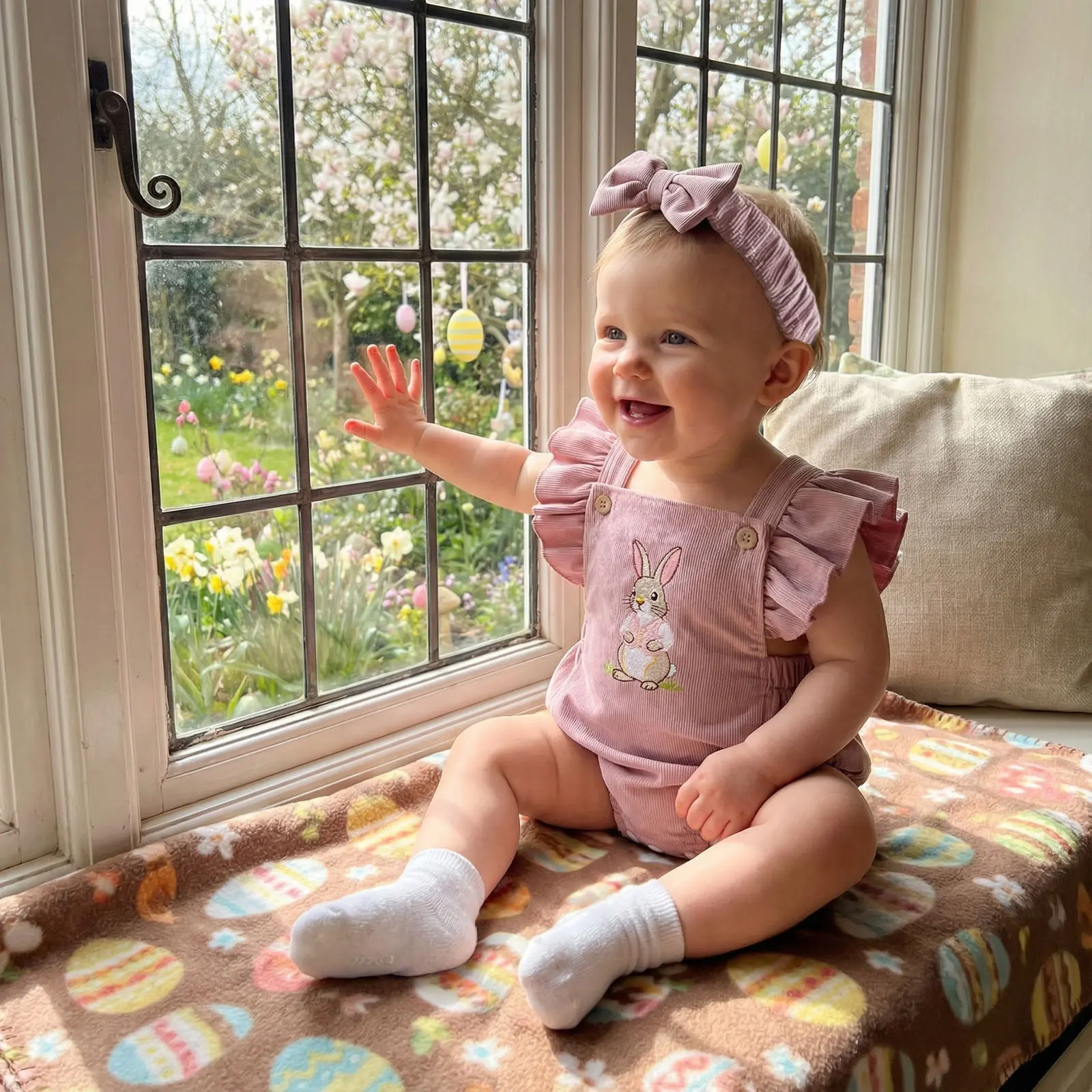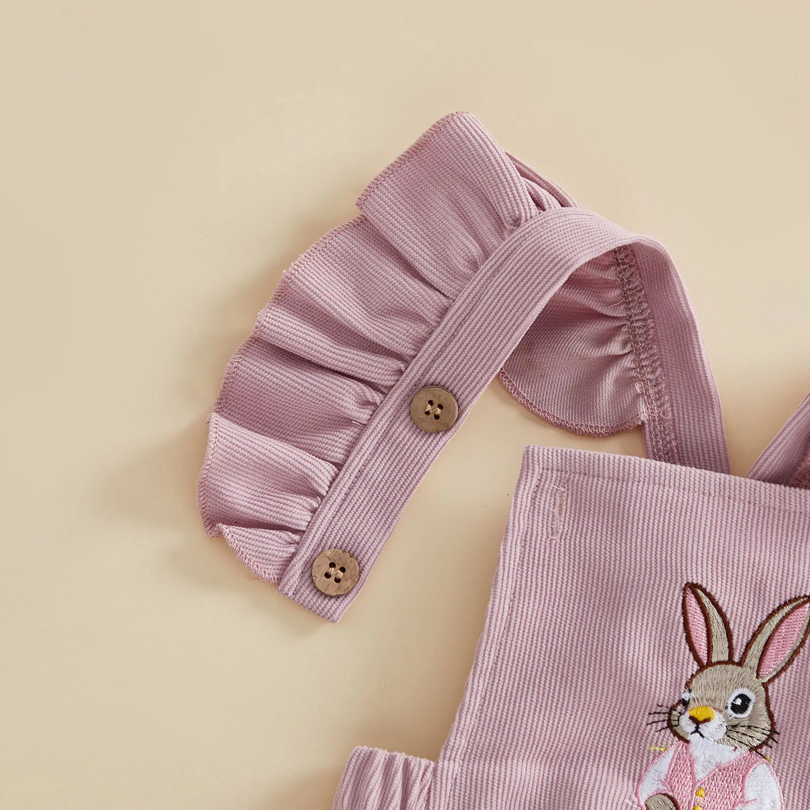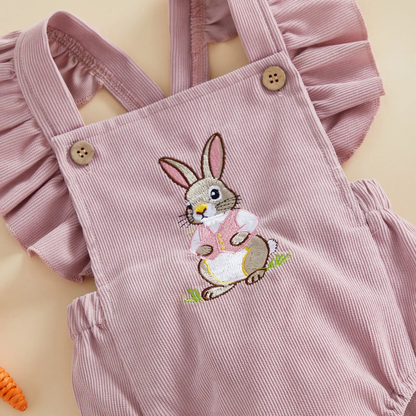 Infant Baby Girls Easter Romper Cute Fashionable Bunny Embroidery Flutter Sleeve Jumpsuit