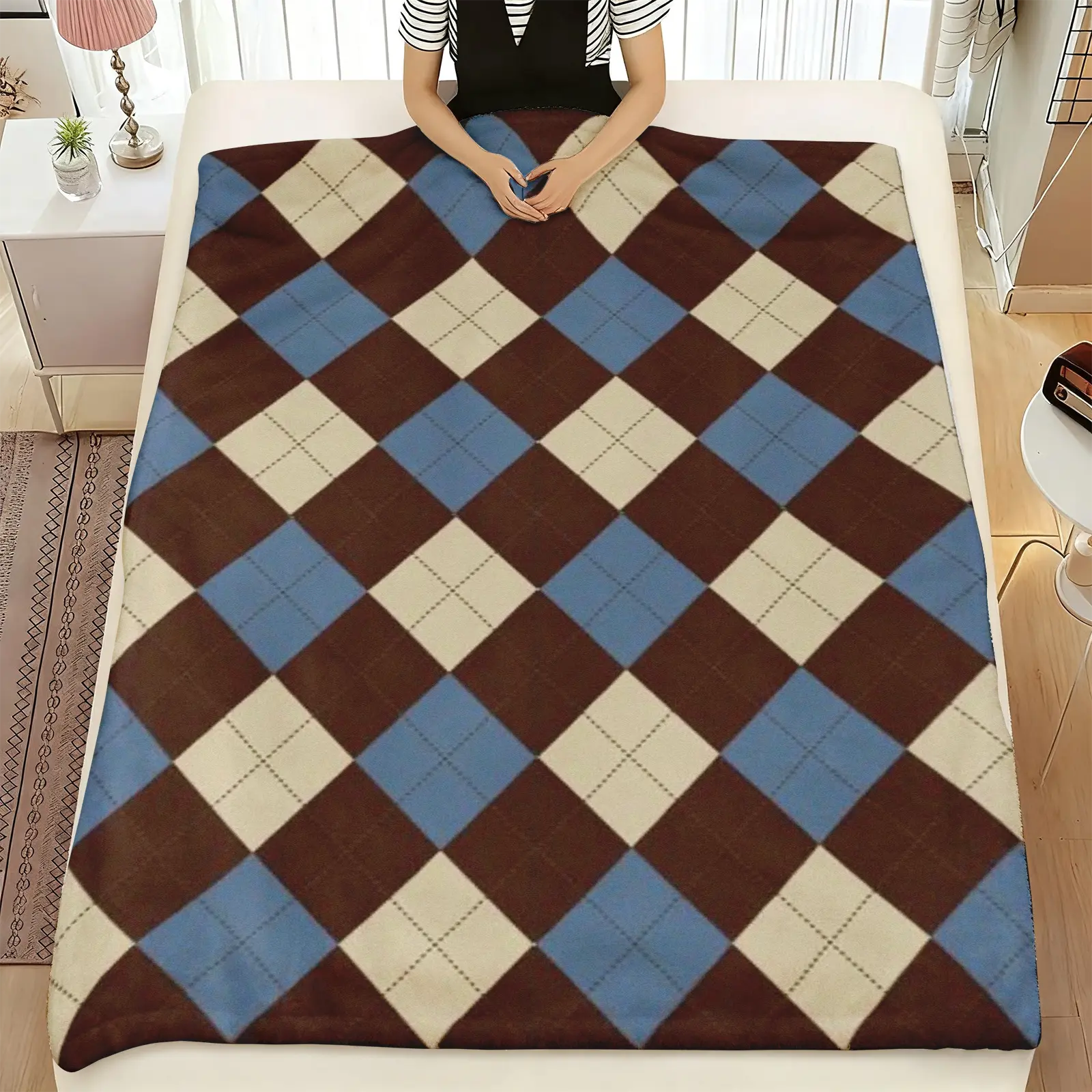 Vintage Argyle Flannel Throw Blanket, Soft Cozy Plaid Blanket for Couch Bed, Warm Lightweight for Adults Kids, Perfect for Sofa Bedroom Office, Retro Home Decor