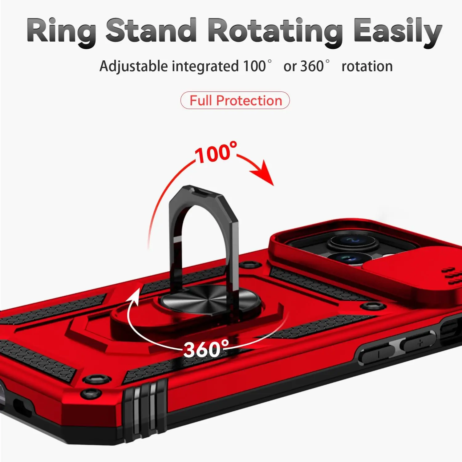 With ring style kickstand: 360 degree rotating ring moves in a full circle, kickstand lets you watch movies and videos hands-free