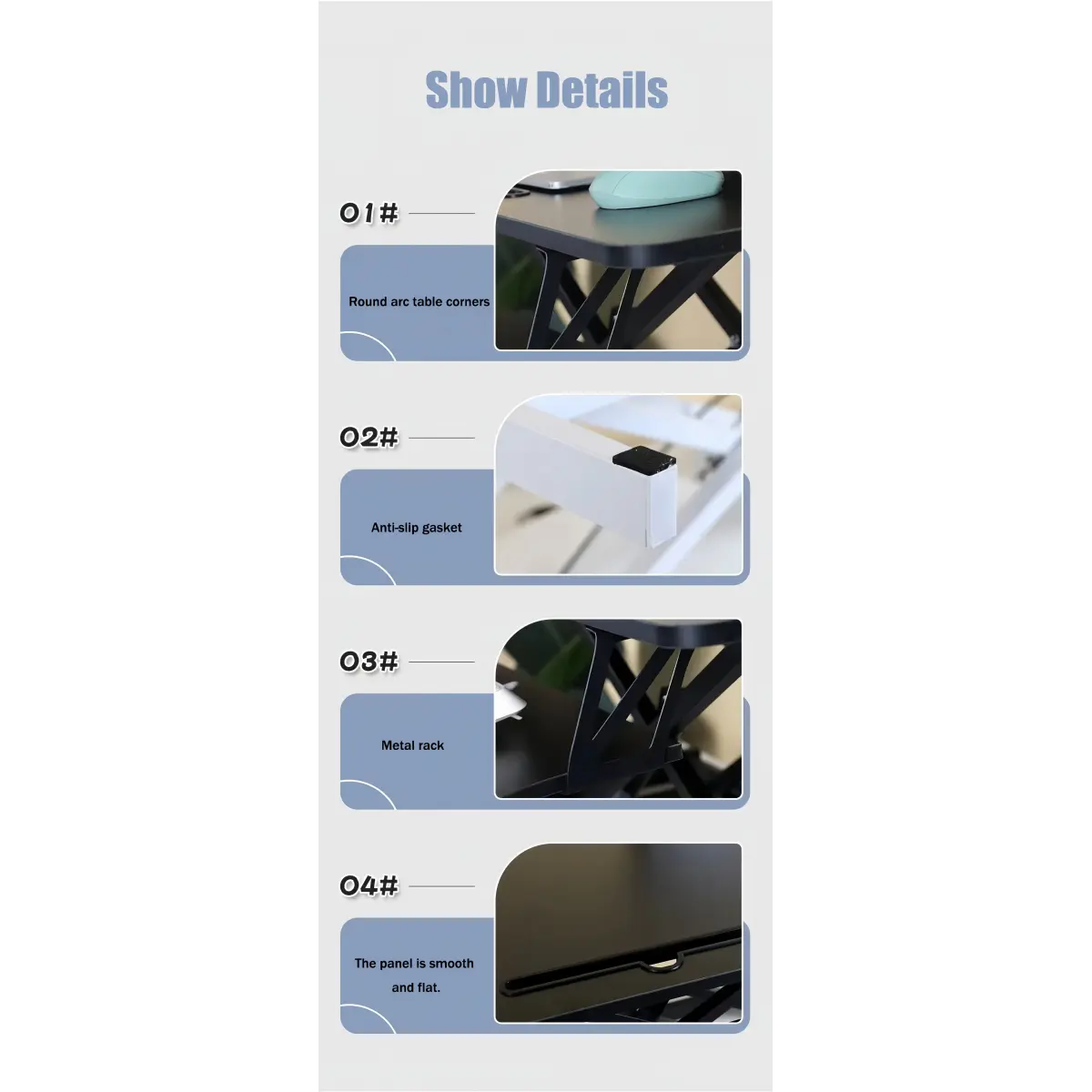 ·[STURDY STRUCTURE]Ergonomic design standing desk.The solid structure keeps your desk riser steady and the maximum weight hold up to 30 lbs.