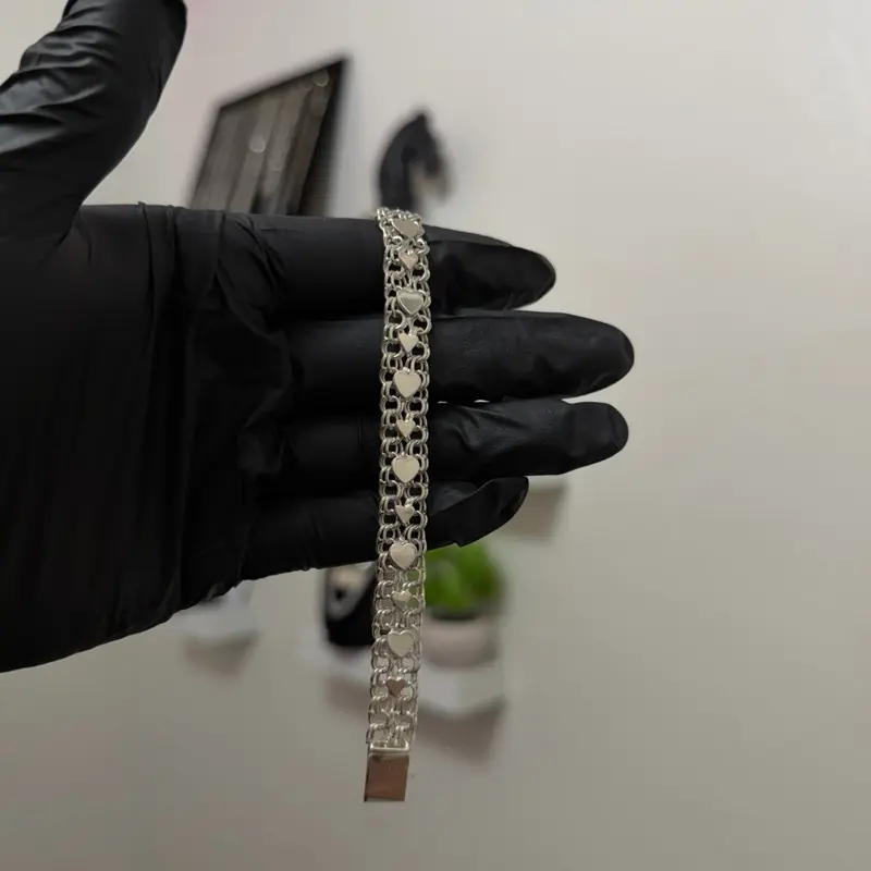 double silver bracelet with hearts
