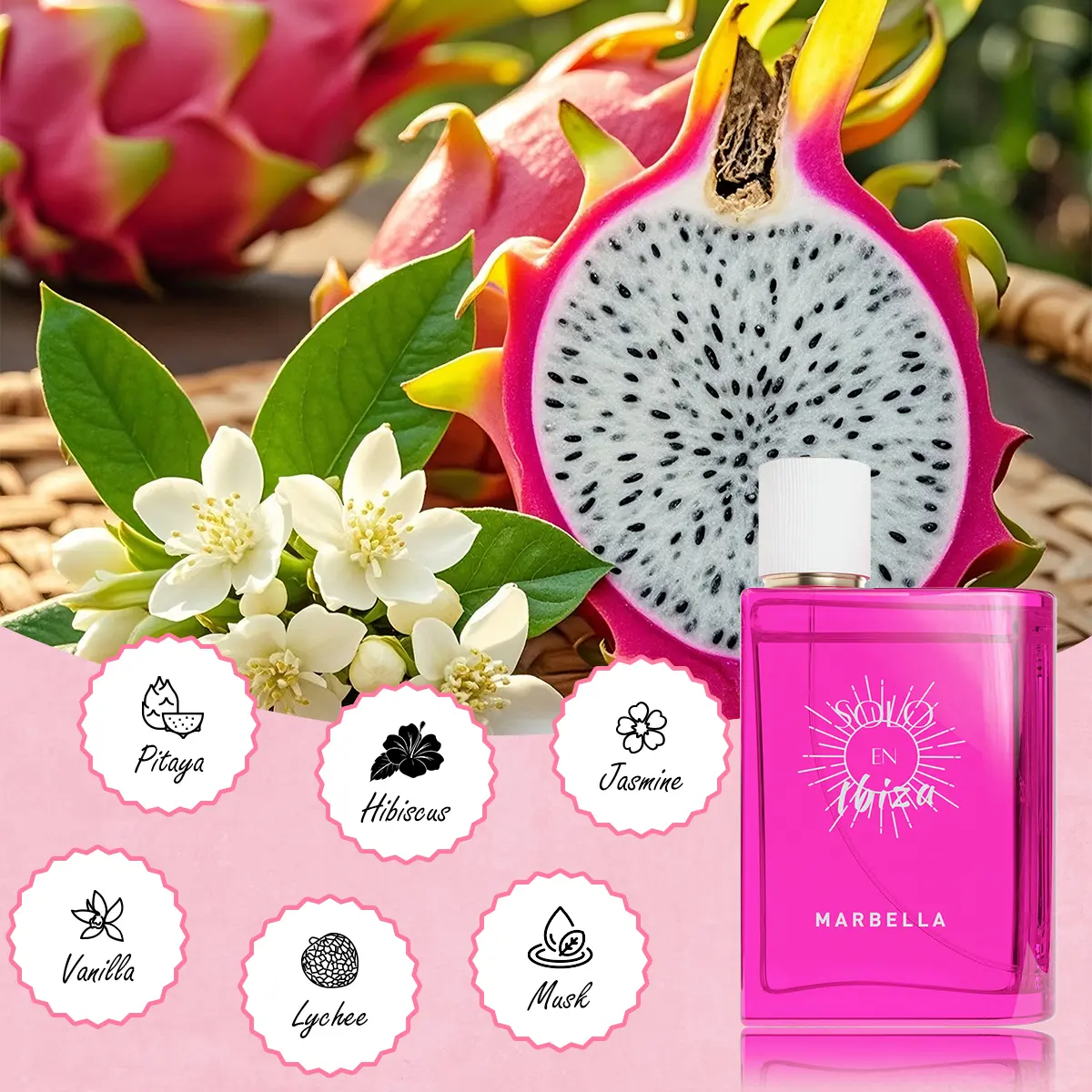 Solo En Ibiza Marbella Eau de Parfum | Pitaya Lychee Jasmine Vanilla | Long-Lasting Scent | 100ml