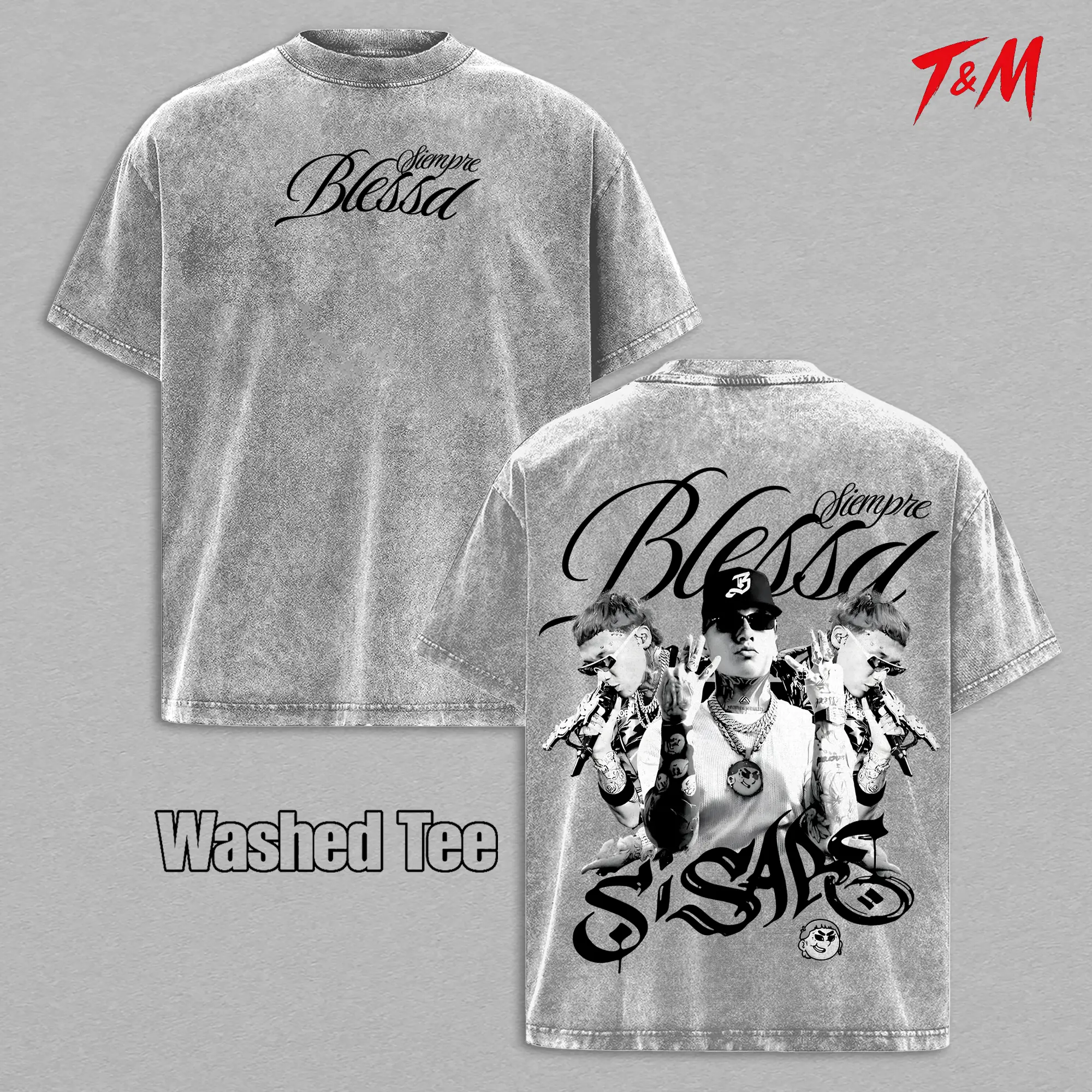 Blessd Siempre Blessd Si Sabe Graphic Washed T-Shirt , Oversized Cotton Tee, Latin Trap Reggaeton Streetwear Shirt, Music Unisex