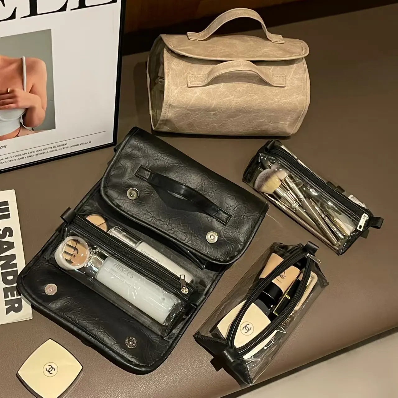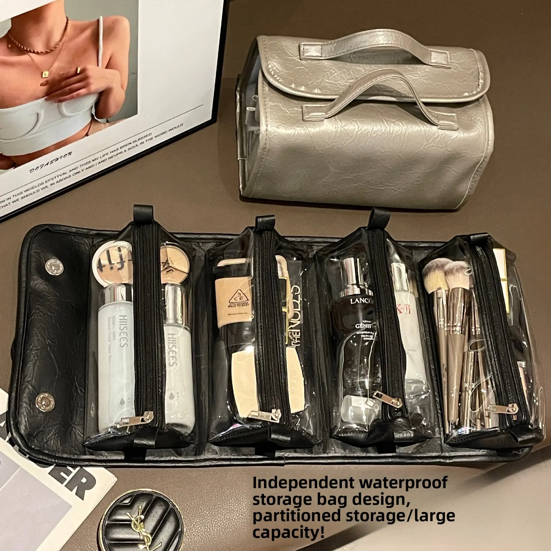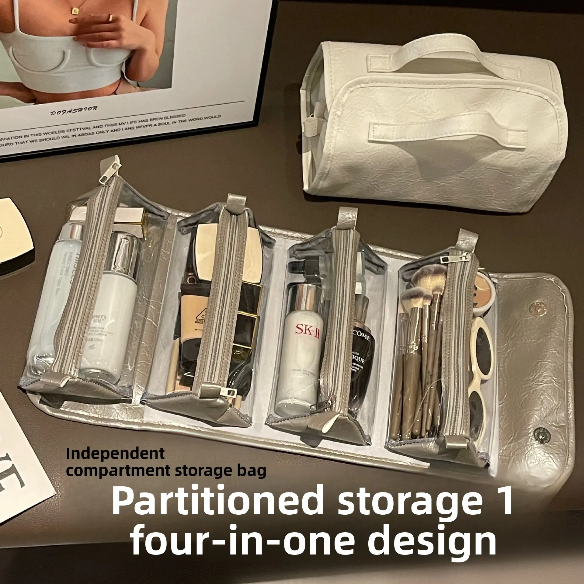 New 4-in-1 Makeup Bag - Detachable, Foldable, Large Capacity - Perfect Travel & Outdoor Toiletry Organizer