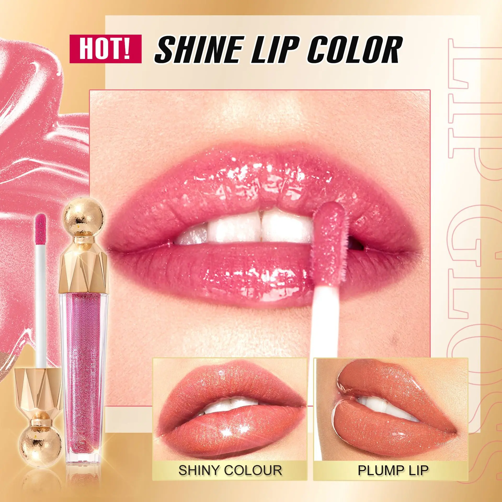 Fine shimmer lip gloss that doesn't fade, easy to apply, moisturizing and hydrating, with a glossy mirror-like finish for plump lips