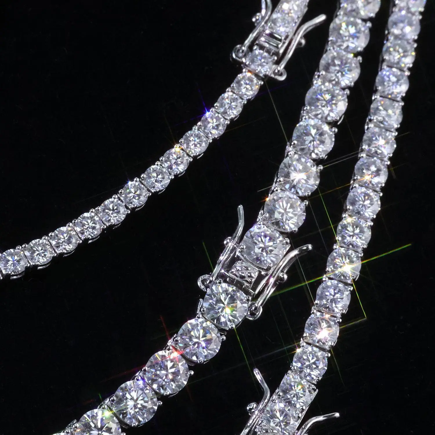 Hip Hop 925 Sterling Silver 3mm 4mm 5mm VVS Moissanite Diamond Necklace Moissanite Tennis Chain