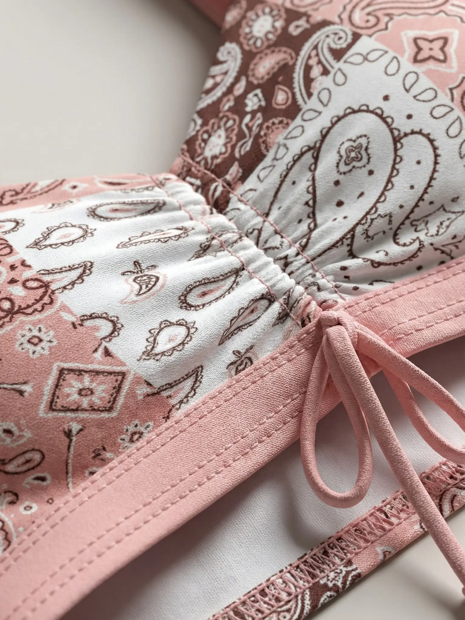 SunKiss Color Block Bikini Set High Waisted Tummy Control Two Piece Swimsuit for Women Summer Beachwear High Waisted Tummy Control Swimsuit Snatched Fit Body Shaping Stretchy